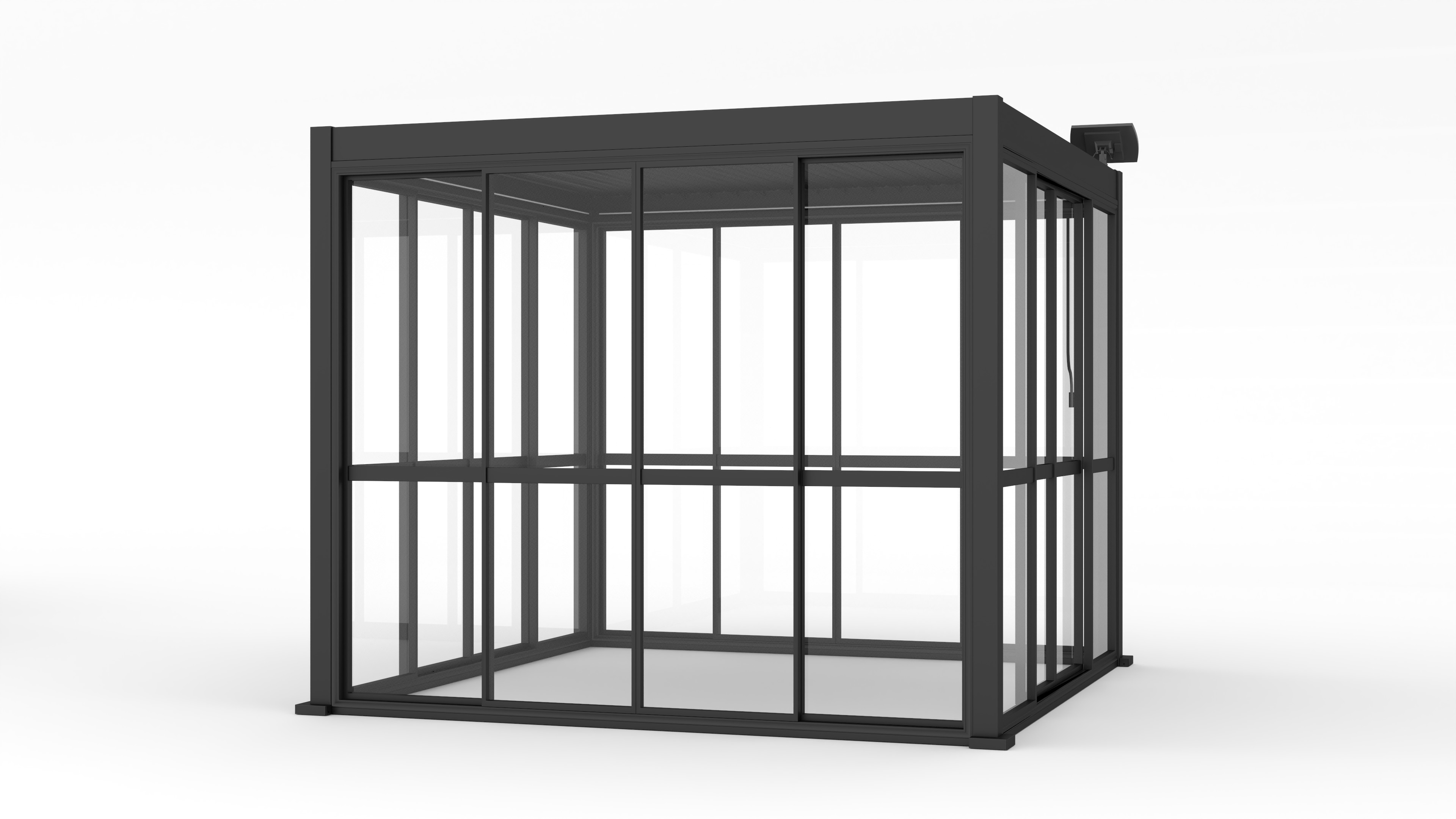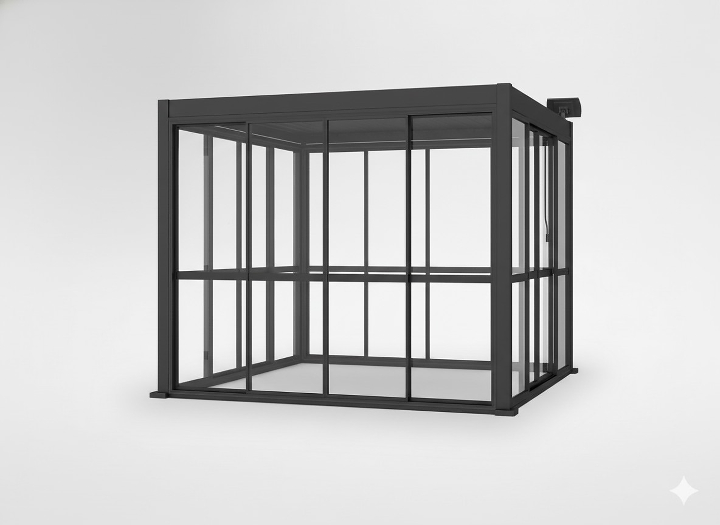Прочная алюминиевая рама серого цвета и панели из поликарбоната толщиной 3 мм гарантируют долговечность, ударопрочность и эстетичный вид, который идеально сочетается с современными перголами.