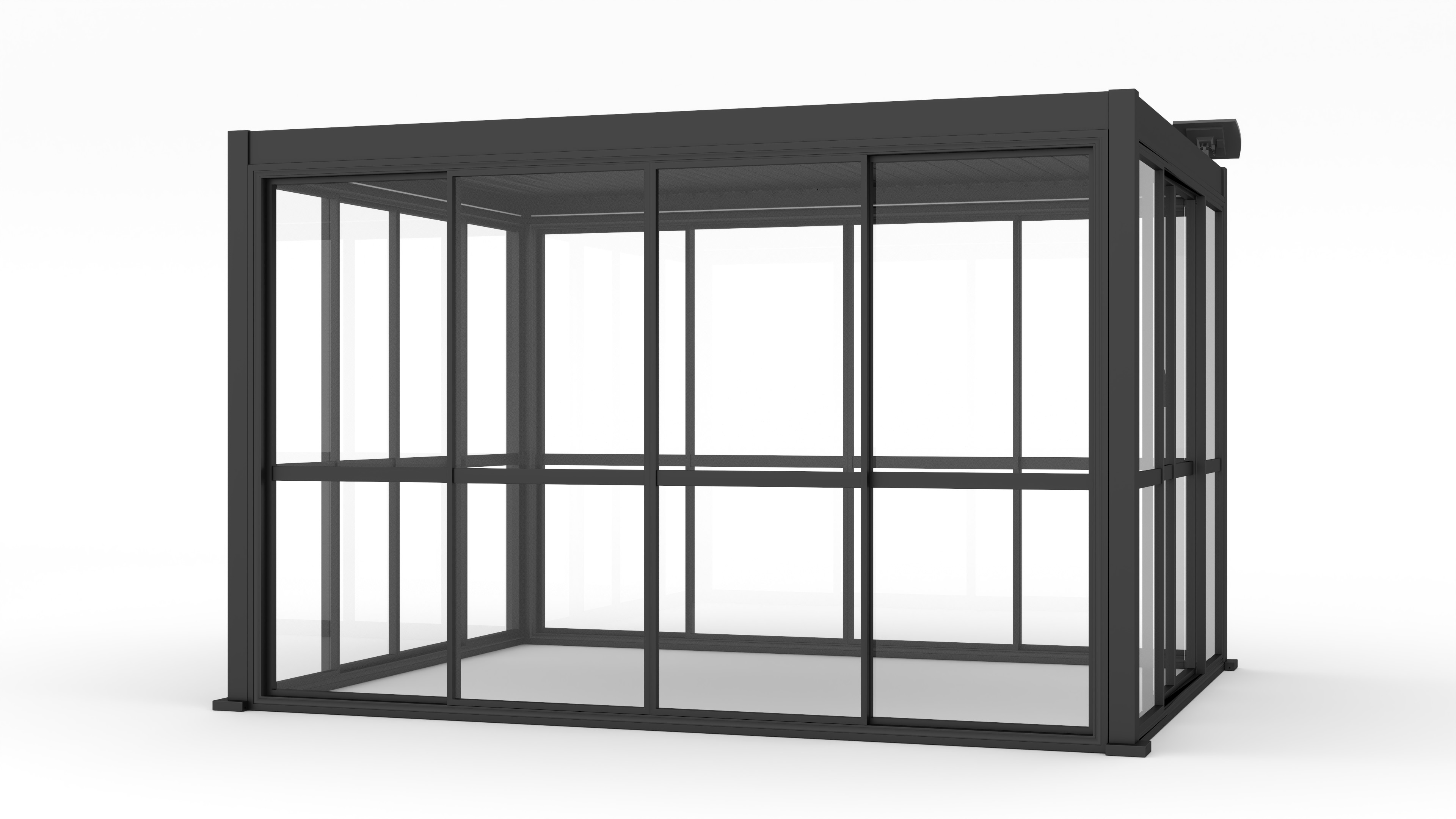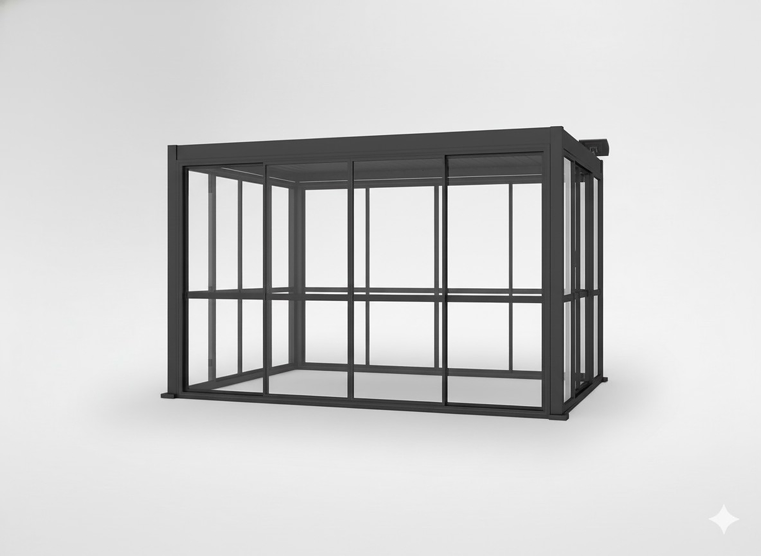 Прочная алюминиевая рама серого цвета и панели из поликарбоната толщиной 3 мм гарантируют долговечность, ударопрочность и эстетичный вид, который идеально сочетается с современными перголами.