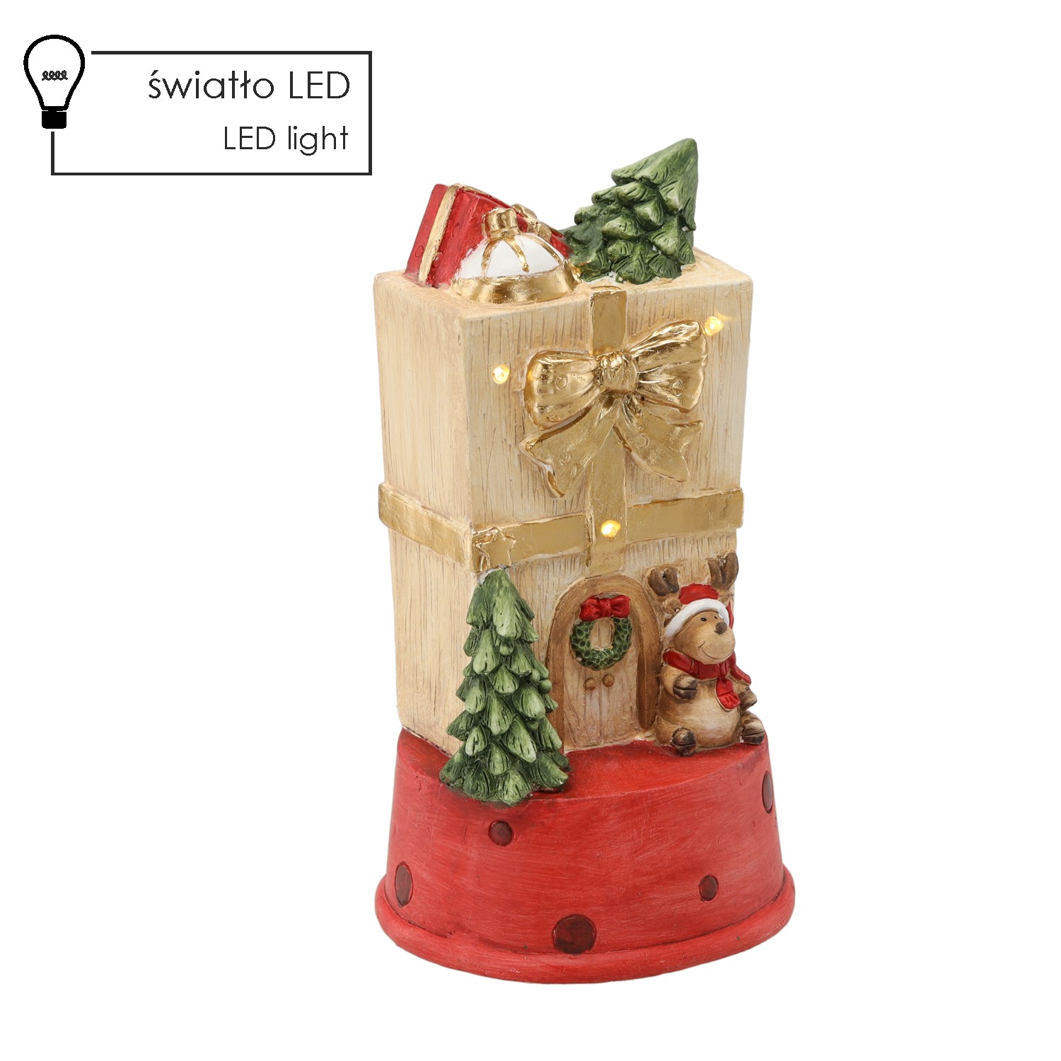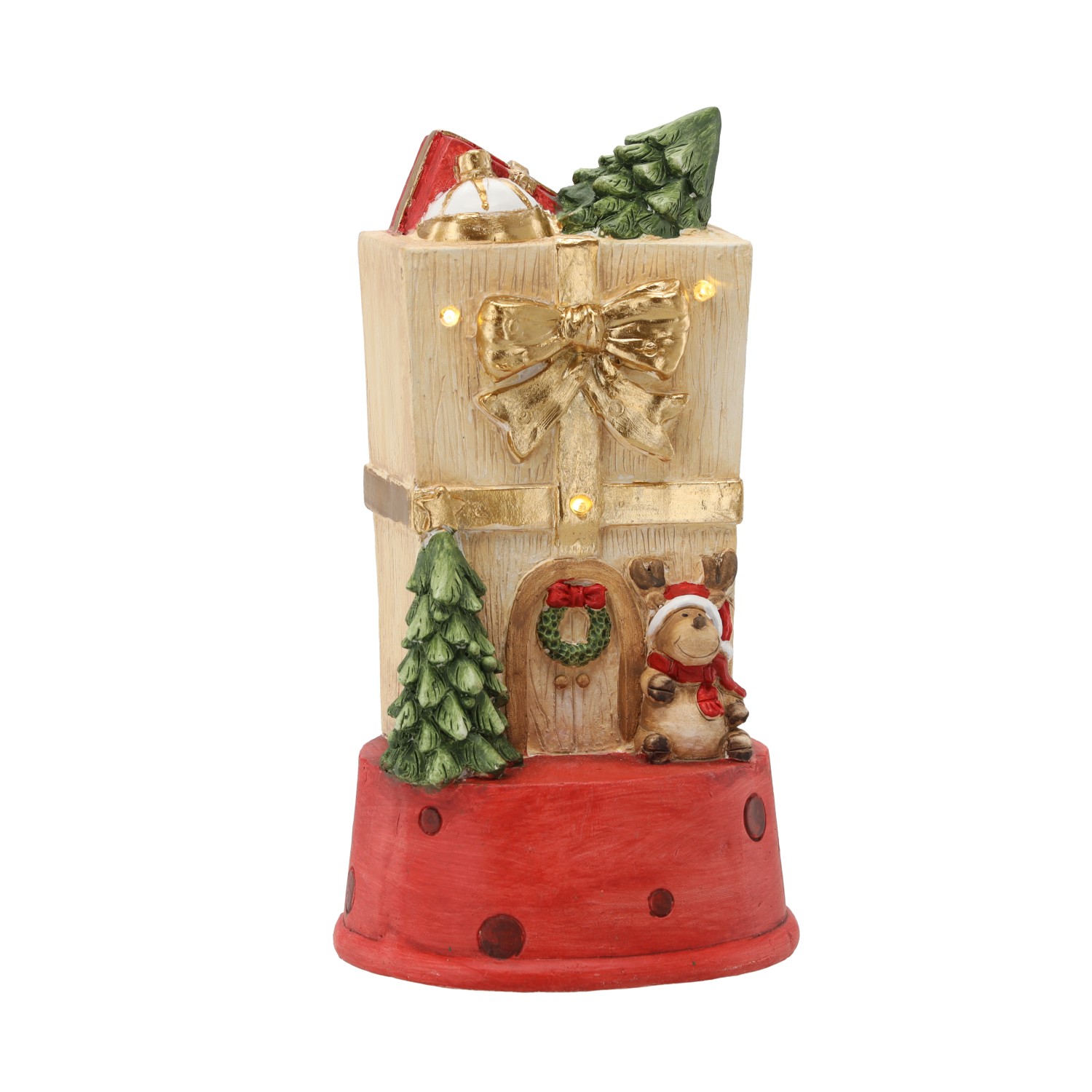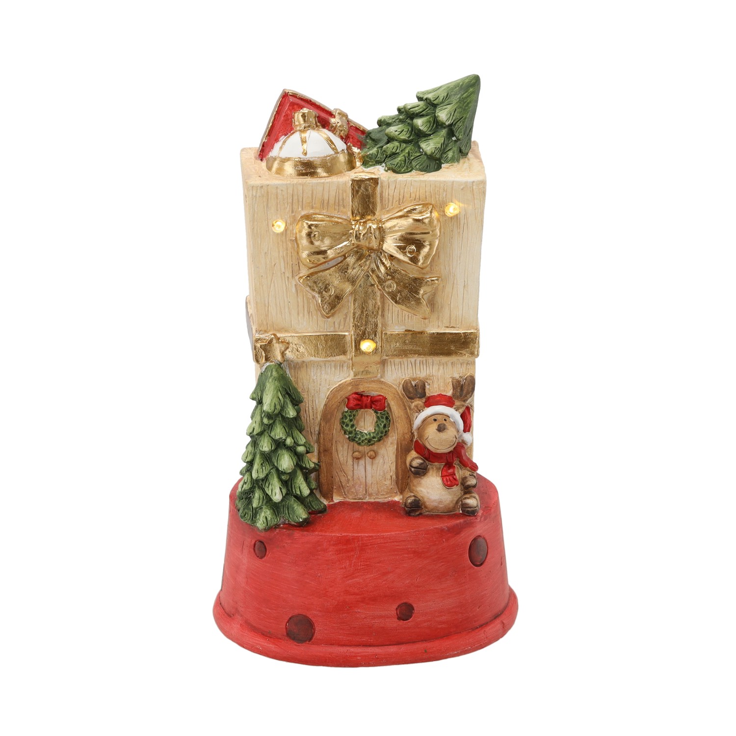Рождественская фигурка «Домик с оленем» с подсветкой LEDПитание: 2 батарейки AAA (батарейки не входят в комплект)Материал: магнезияРазмеры: 22 x 21 x 40 см
