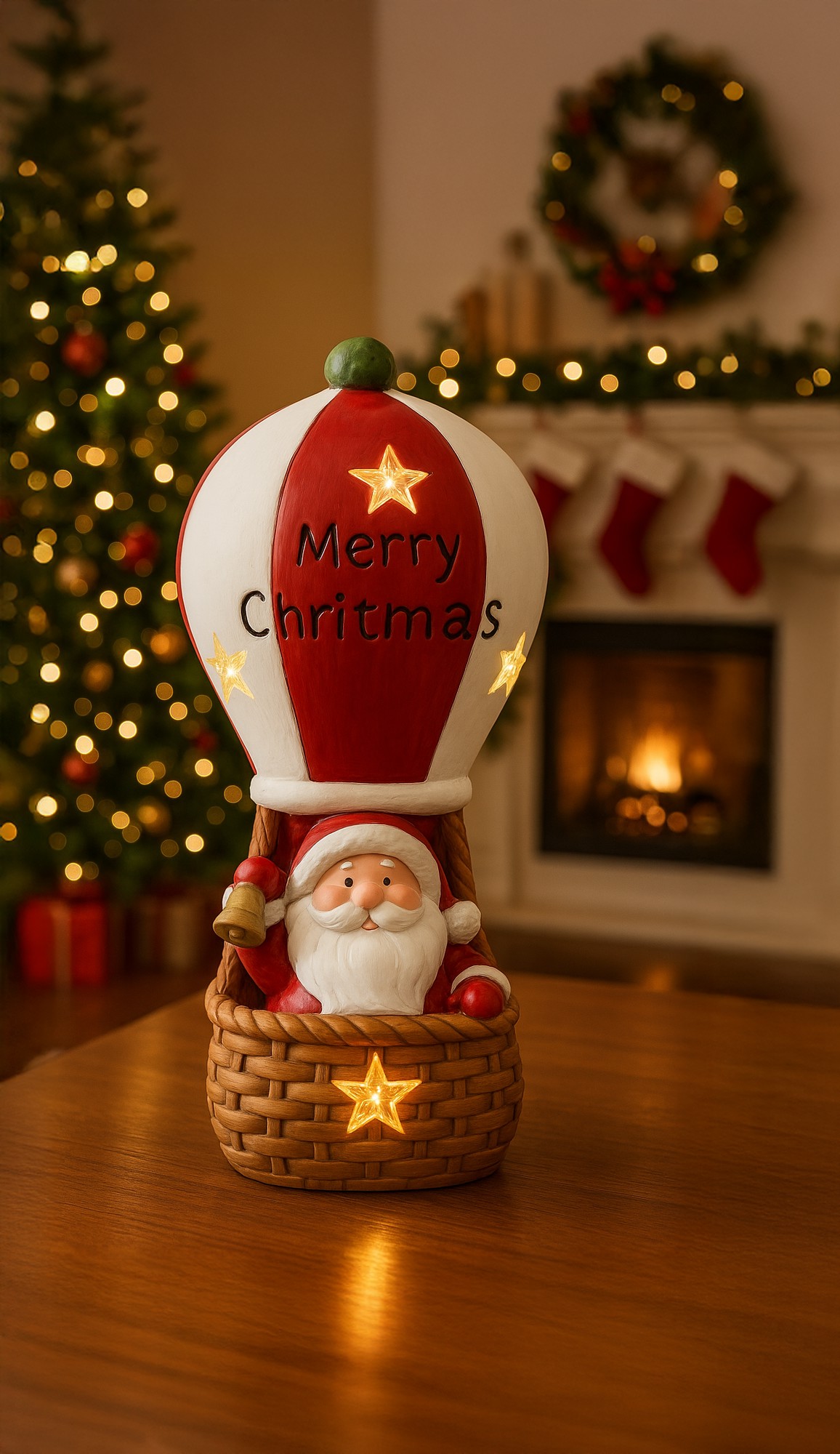 Рождественская фигурка Санта-Клауса в светодиодном шареПитание: 3 батарейки AAA (батарейки не входят в комплект)Материал: магнезияРазмеры: 20 x 20 x 43 см