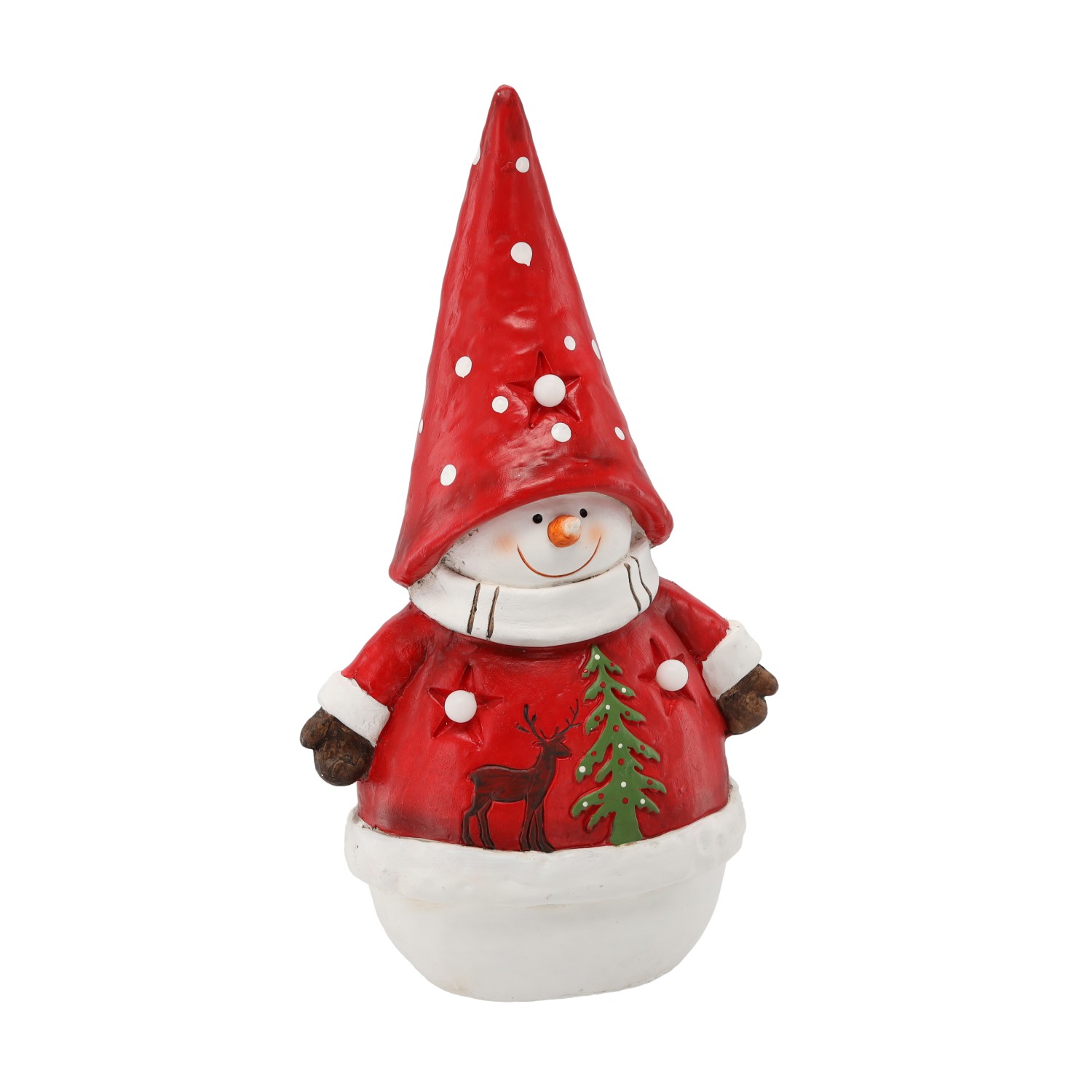 Рождественская фигурка Снеговик в шапке с подсветкойПитание: 3 батарейки AAA (батарейки не входят в комплект)Материал: магнезияРазмеры: 28,5 x 18 x 51,5 см