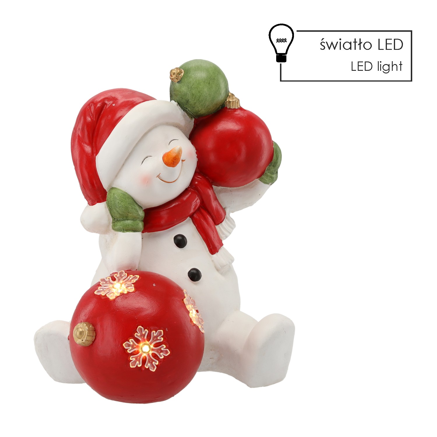 Рождественская фигурка Снеговик с LED-шарамиПитание: 3 батарейки AAA (батарейки не входят в комплект)Материал: магнезияРазмеры: 26,3 x 24,2 x 32 см