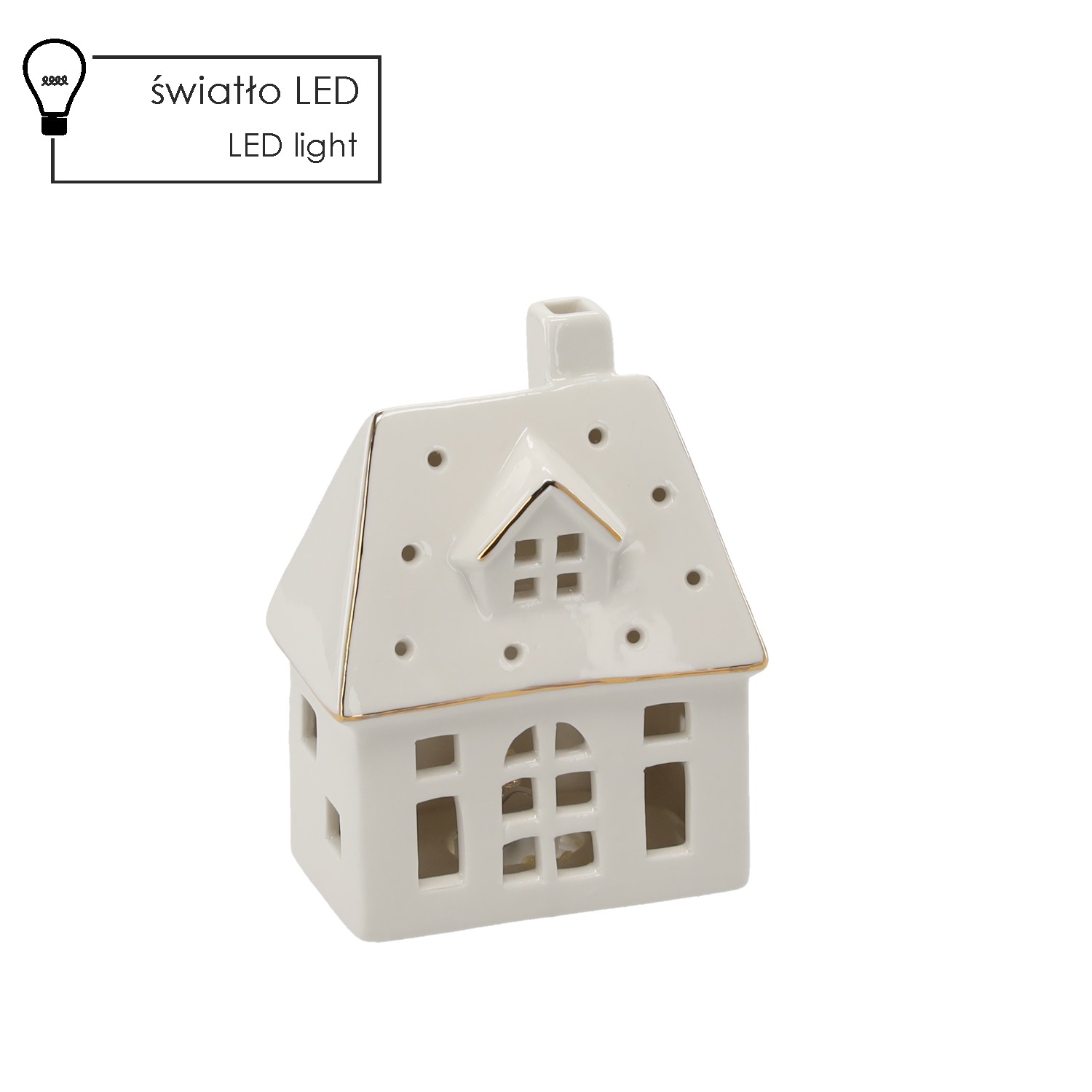 Рождественская фигурка «Керамический домик» с подсветкой LEDПитание: 2 батарейки LR44 (батарейки прилагаются)Материал: керамикаРазмеры: 10 x 6,2 x 13 смЦвет: белый
