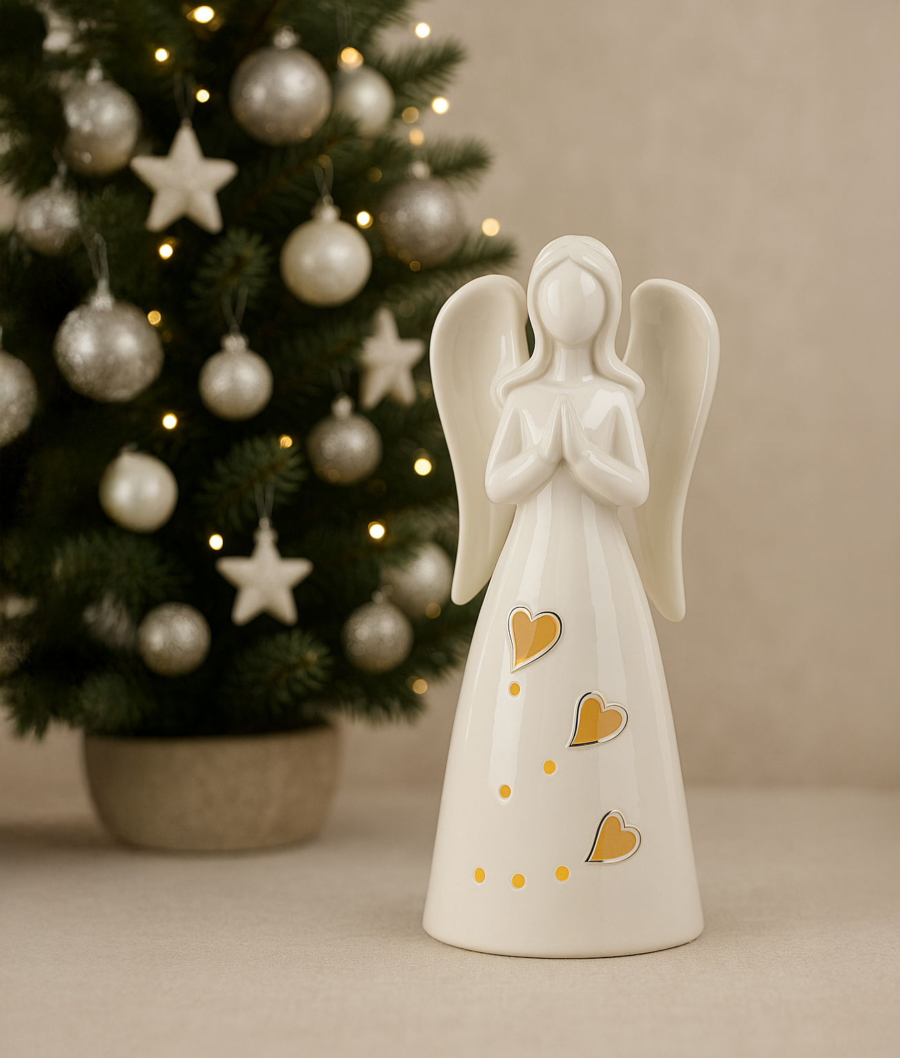 Рождественская фигурка Ангел Керамический LEDПитание: 2 батарейки LR44 (батарейки в комплекте)Материал: керамикаРазмеры: 7,7 x 7,1 x 20,4 см