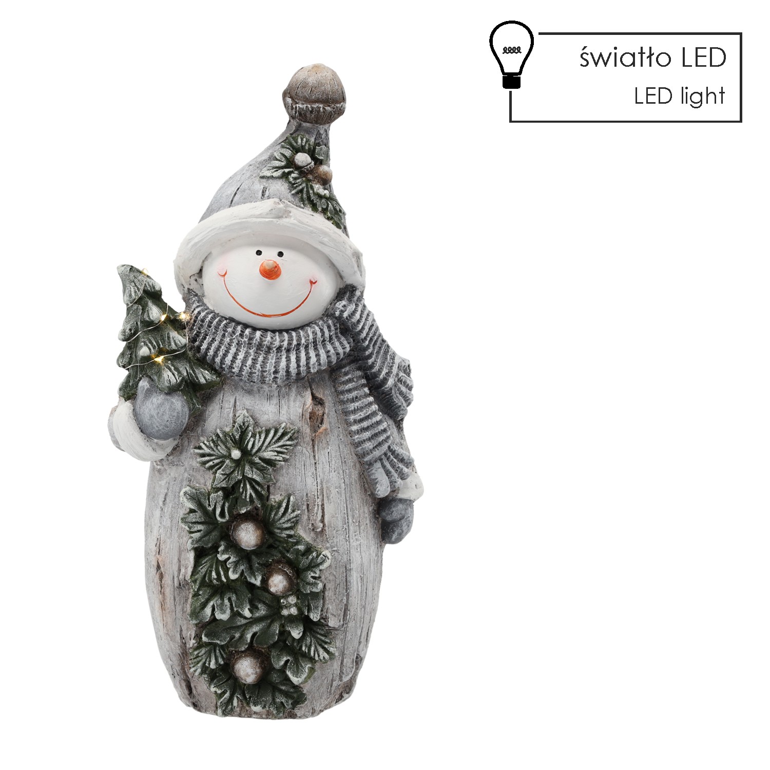 Рождественская фигурка Снеговик с LED-елочкойПитание: 3 батарейки AAA (батарейки не входят в комплект)Материал: магнезияРазмеры: 21,4 x 13,2 x 44 см
