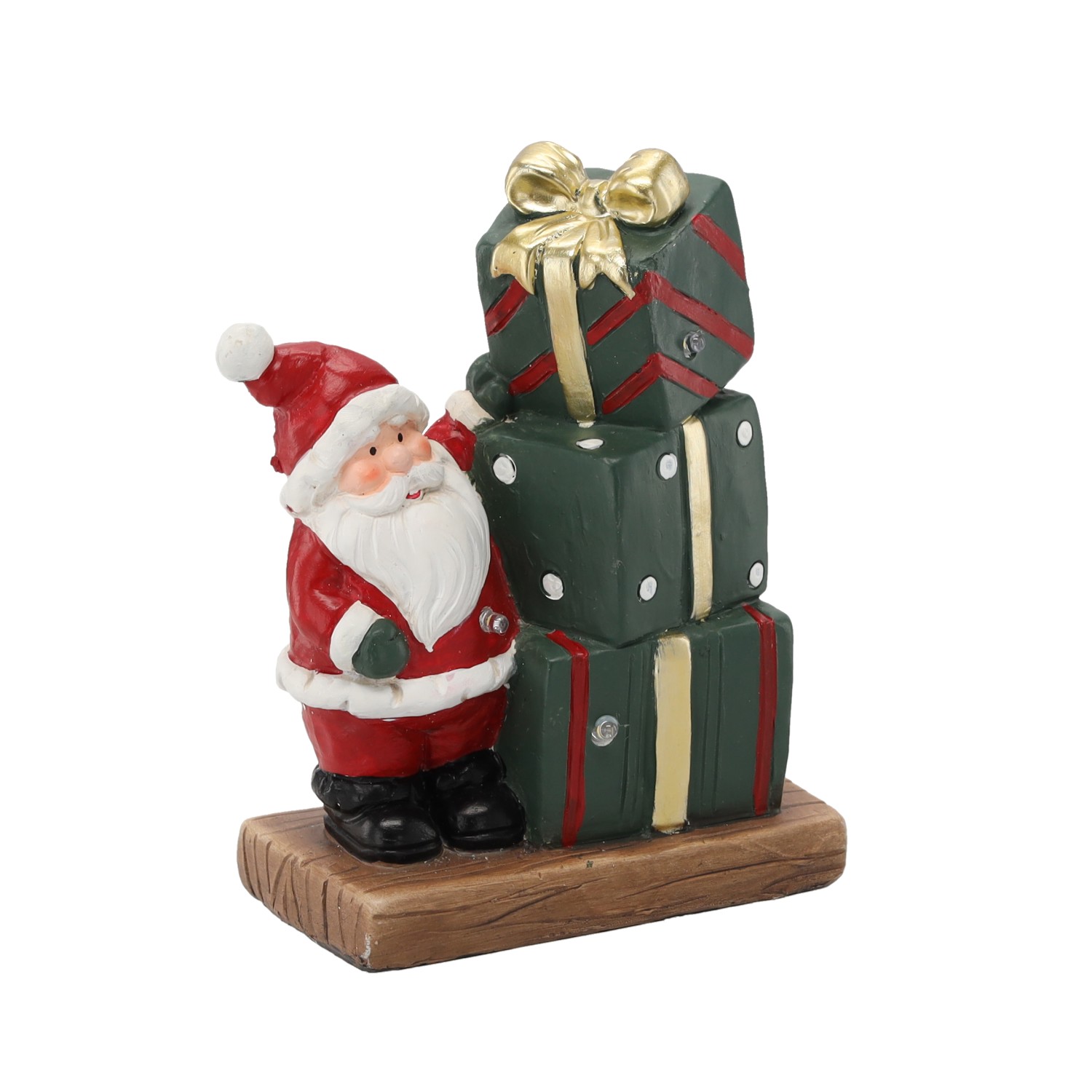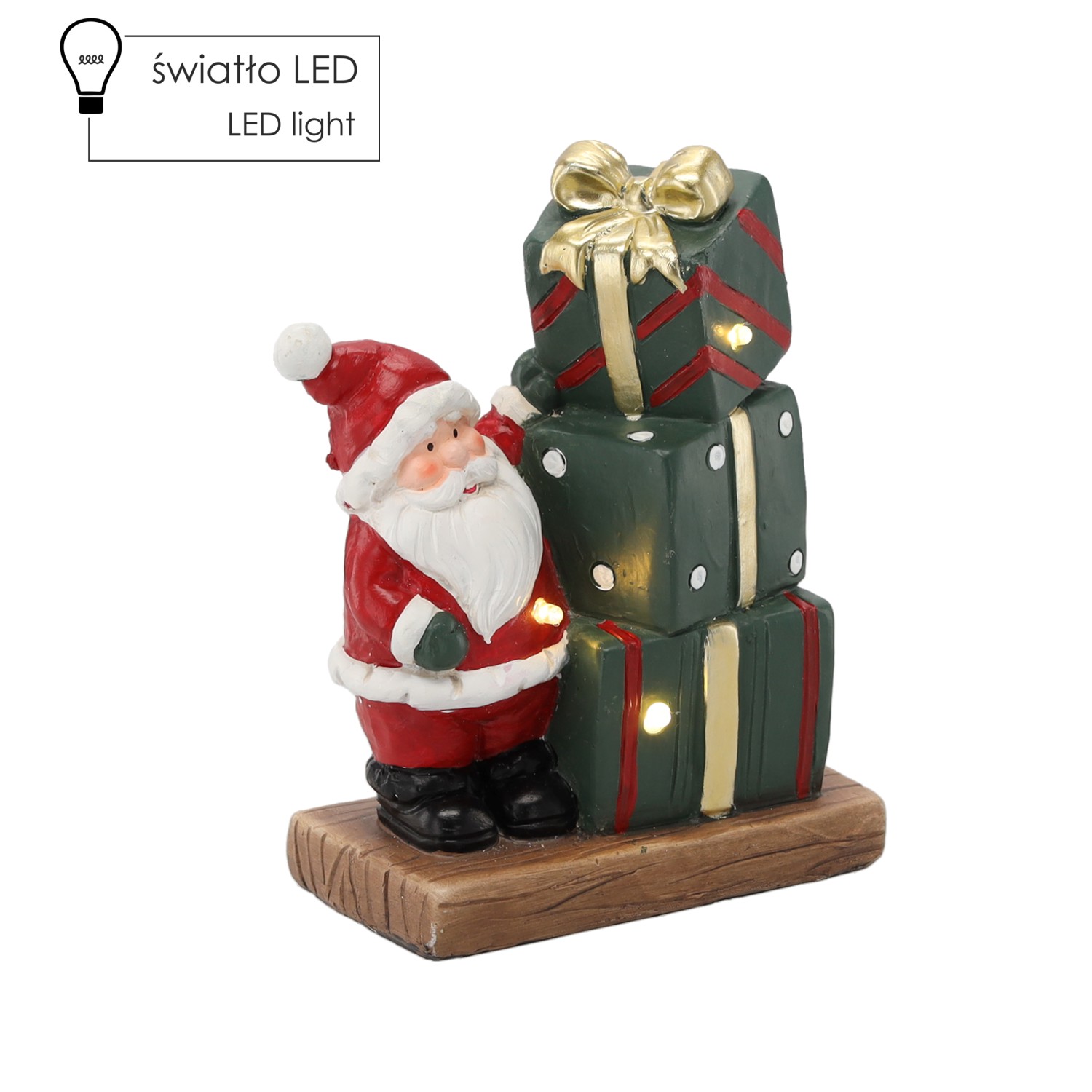Рождественская фигурка Санта-Клауса с подарками и светодиодной подсветкойПитание: 2 батарейки LR44 (батарейки прилагаются)Материал: полимерРазмеры: 15,6 x 8 x 19,8 см