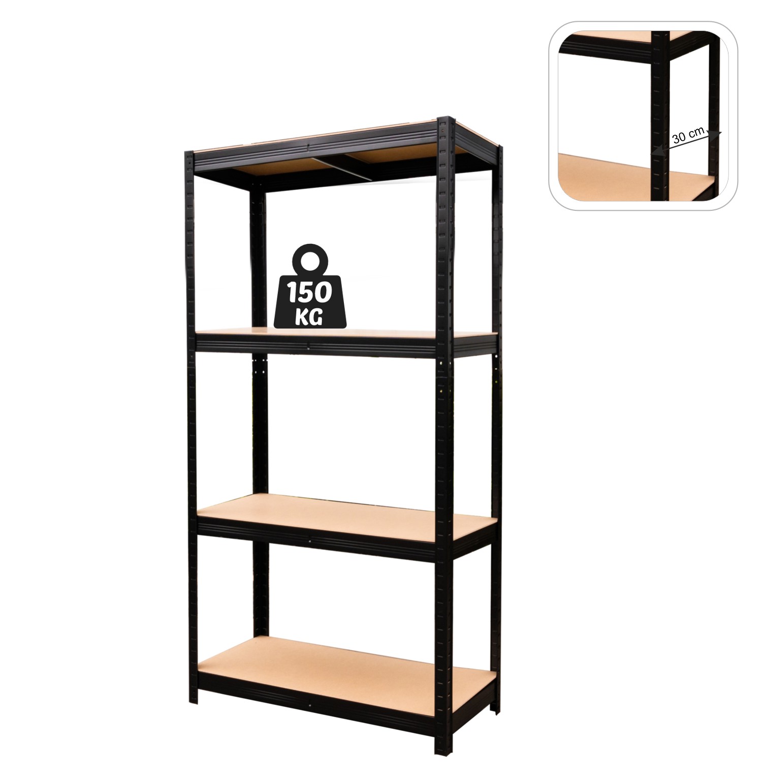 Четырехуровневая полка черного цвета представляет собой практичное решение для хранения различных предметов. Благодаря возможности регулировки высоты полок вы с легкостью сможете адаптировать ее к своим потребностям. Стабильная конструкция из металла с порошковым покрытием гарантирует долговечность и прочность. Гальванизированные металлические профили и полки из МДФ обеспечивают прочность конструкции. Кронштейны под каждой полкой усиливают стабильность, а максимальная нагрузка 150 кг делает стеллаж очень функциональным. Простой монтаж позволяет быстро приступить к использованию.