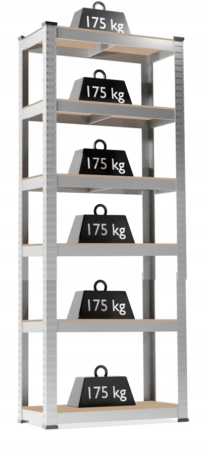Высокая грузоподъемность полок: каждая полка выдерживает до 175 кг, что позволяет безопасно хранить тяжелые предметы.