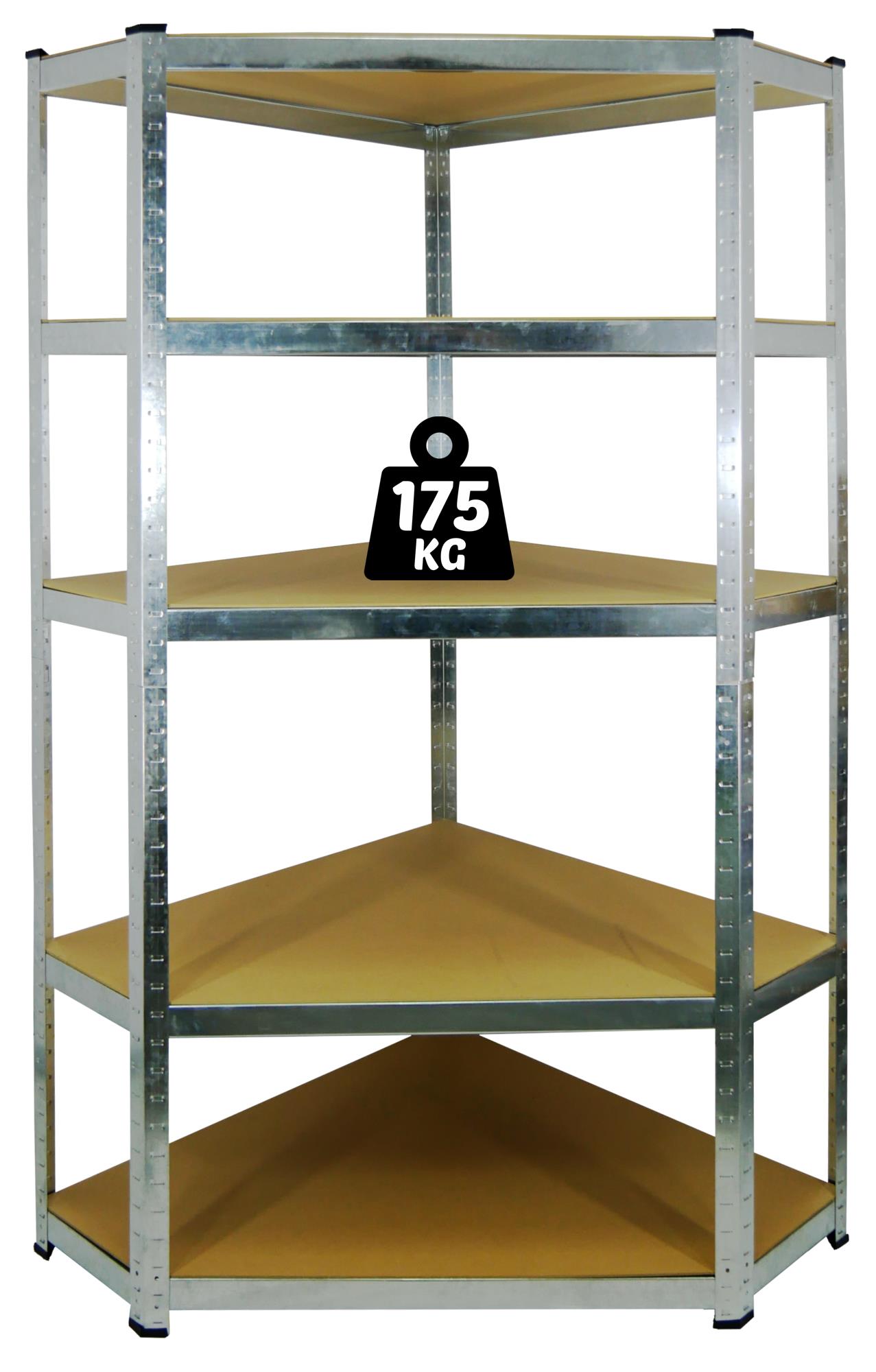 Пятиуровневый угловой стеллаж представляет собой практичное решение для использования углового пространства. Изготовленный из оцинкованных металлических профилей и полок из МДФ, он гарантирует прочность и стабильность. Каждая из 5 полок имеет максимальную нагрузку до 175 кг (при равномерном распределении веса), а максимальная нагрузка всего стеллажа составляет 875 кг, что делает его надежным и функциональным решением.