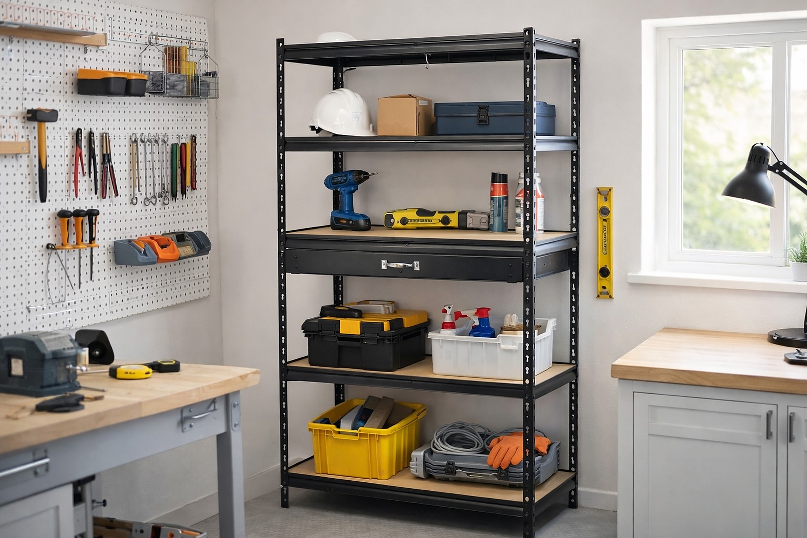 Стеллаж изготовлен изпрочной оцинкованной стали, которая защищает от коррозии, что обеспечивает длительный срок службы даже в более сложных условиях, таких как влажные подвалы или гаражи. Стабильная конструкция гарантирует безопасность хранящихся предметов.