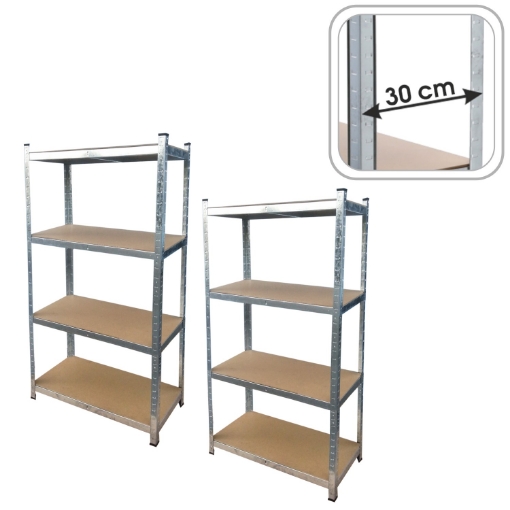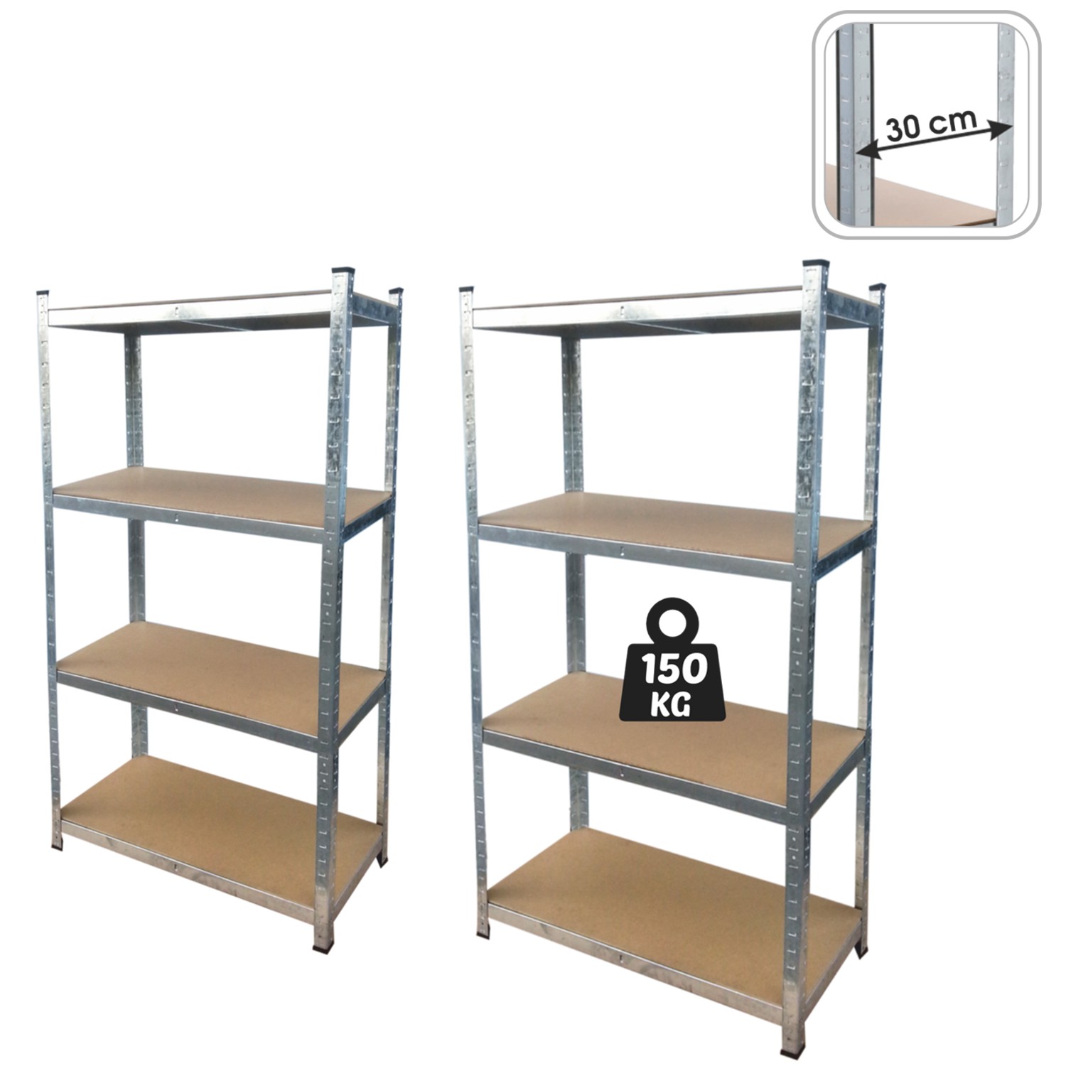 Внесите порядок и функциональность в свое пространство с помощью прочного набора из двух стеллажей GWI2165. Идеальное решение для гаража, подвала, мастерской, офиса или склада. Каждый стеллаж имеет 4 прочные полки, каждая из которых выдерживает нагрузку до 150 кг – в общей сложности до 600 кг на стеллаж!