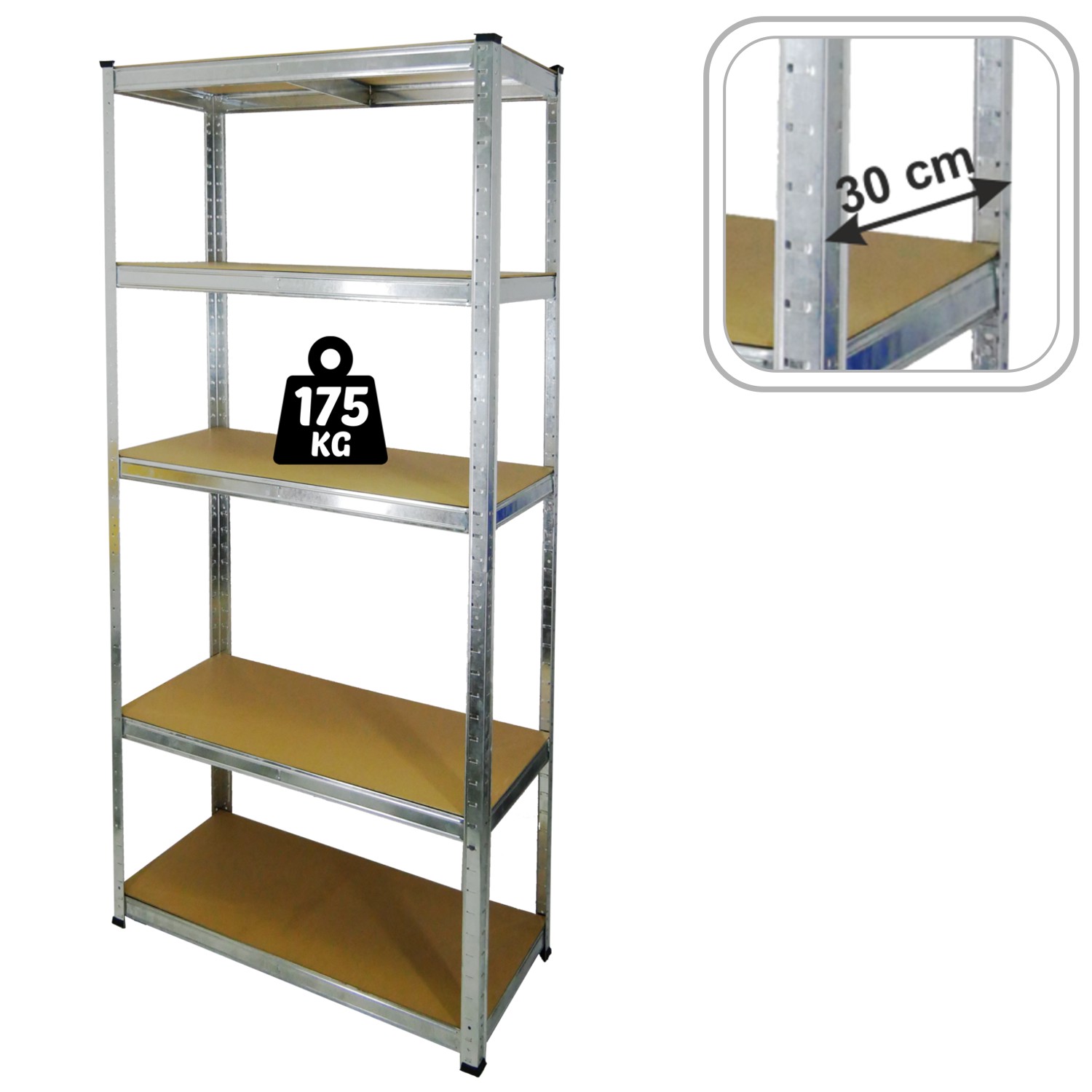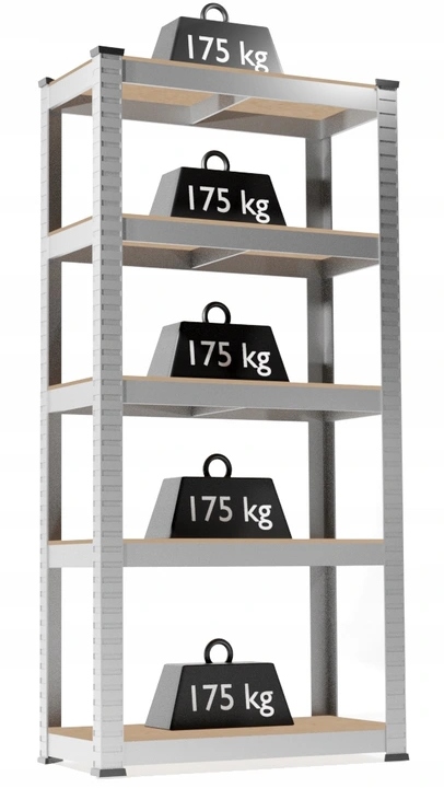 Пятиуровневый стеллаж представляет собой отличное решение для хранения различных предметов в любом помещении. Изготовленный из оцинкованных металлических профилей и полок из HDF-плит, он гарантирует стабильность и долговечность. Кронштейны под каждой полкой обеспечивают дополнительное усиление конструкции. Максимальная нагрузка на одну полку составляет 175 кг, что делает стеллаж функциональным и надежным. Прост в сборке, идеально подходит для различных применений.