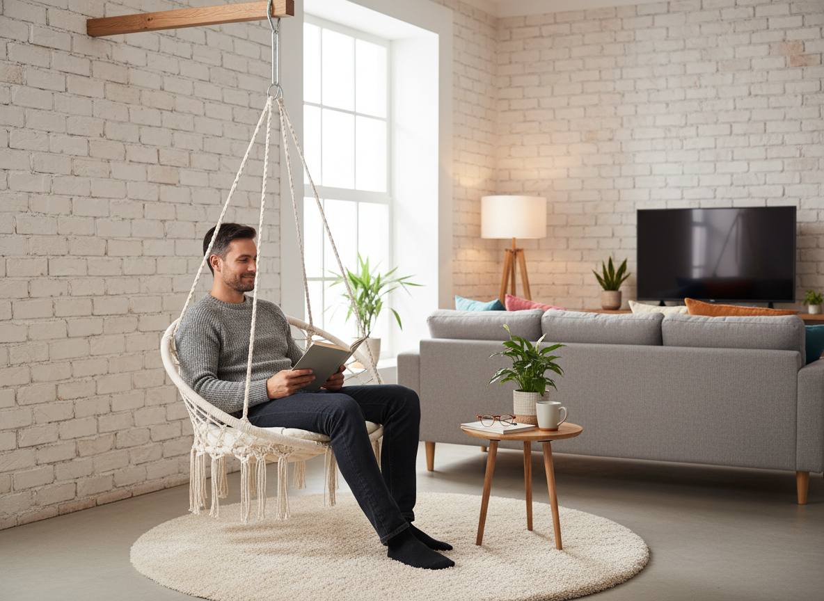 Вы ищете идеальное место для отдыха? Этот подвесной кресло с мягкой подушкой обеспечит вам комфорт, как в облаках - будь то на балконе, в гостиной или на террасе.