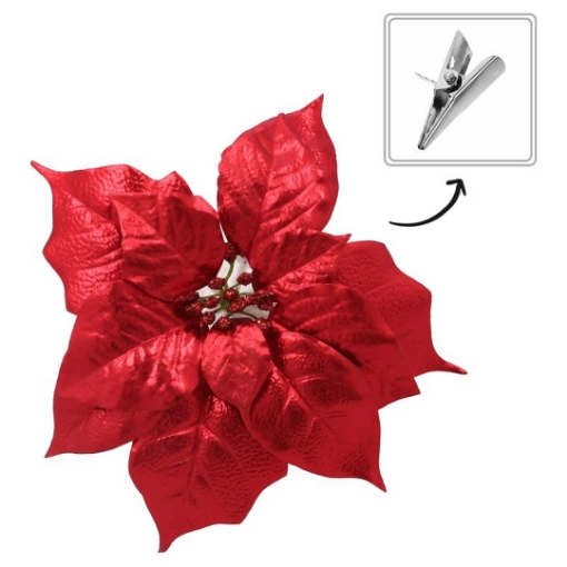 Искусственный цветок - звезда Вифлеема 25 см на клипсе красныйДополните свои рождественские украшения этим очаровательным искусственным цветком звезды Вифлеема на практичной клипсе. Высотой 25 см, ярко-красного цвета, цветок прекрасно сочетается с другими праздничными украшениями, придавая им элегантность и тепло.Изготовленный из высококачественных материалов, цветок Рождественской звезды выглядит естественно, восхищая своими деталями и ярким оттенком красного. Благодаря зажиму украшение можно легко прикрепить к елке, венку, вазе или гирлянде, а также использовать в качестве декоративного элемента на рождественском столе.Идеально подходящий для любых праздничных композиций, этот цветок создаст в вашем доме незабываемую атмосферу Рождества. Создайте уникальную атмосферу с помощью этого красивого искусственного цветка «Звезда Вифлеема» на клипсе.