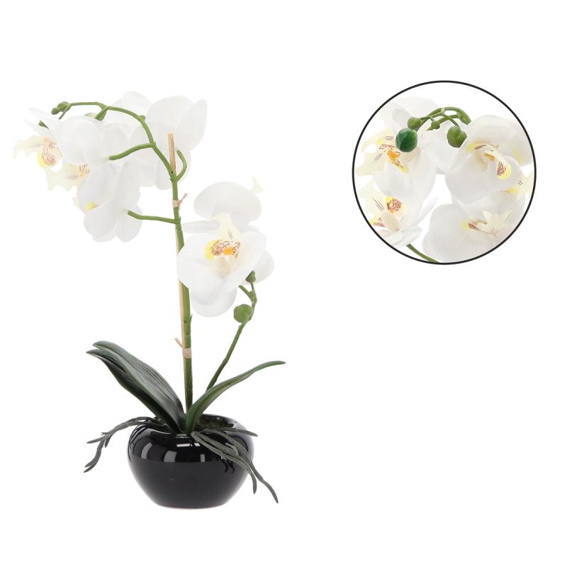 Добавьте элегантности и утонченного очарования вашему интерьеру с помощью искусственной белой орхидеи. Высота 30 см делает этот цветок идеальным украшением для рабочего стола, полки или журнального столика. Изготовленная из высококачественных материалов, искусственная орхидея выглядит естественно и реалистично, не требуя ухода. Благодаря своей прочности, он будет радовать глаз в течение длительного времени, привнося в любое помещение немного роскошной цветочной атмосферы.