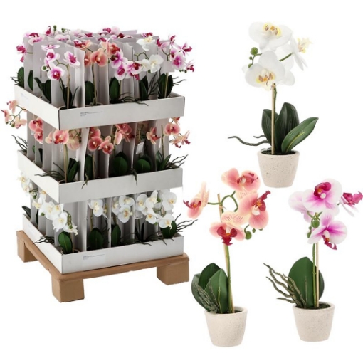 Элегантная искусственная орхидея в горшке является прекрасным украшением для дома, офиса или коммерческого помещения. Реалистично воспроизведенные цветы и листья делают растение похожим на живое, при этом не требуя полива и ухода.