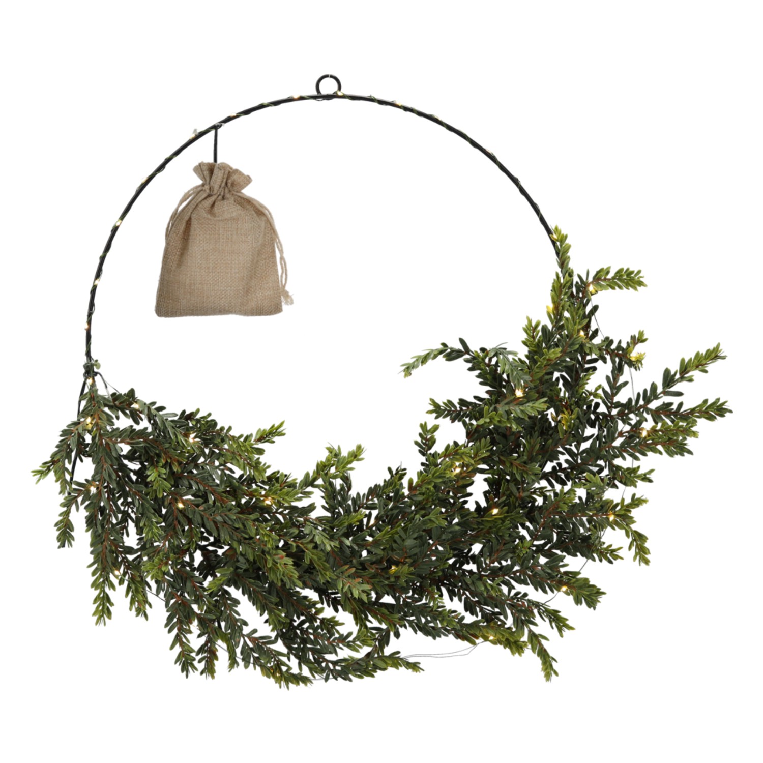 Диаметр: 45 см Отделка: натуральная Комплектация: 40 мини-светодиодных лампочек Питание: 3 батарейки AA (не входят в комплект)
