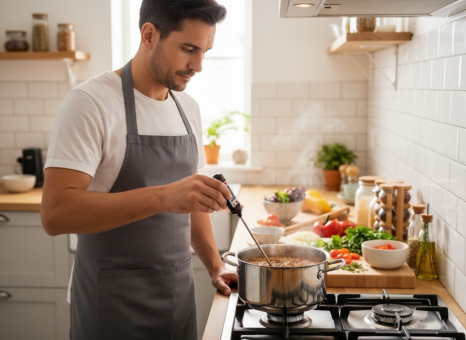 Это незаменимый инструмент на любой кухне — для любителей кулинарии и поклонников идеально приготовленного мяса, выпечки или соусов. Цифровой термометр с датчиком обеспечивает точность, удобство и безопасность в любой ситуации.