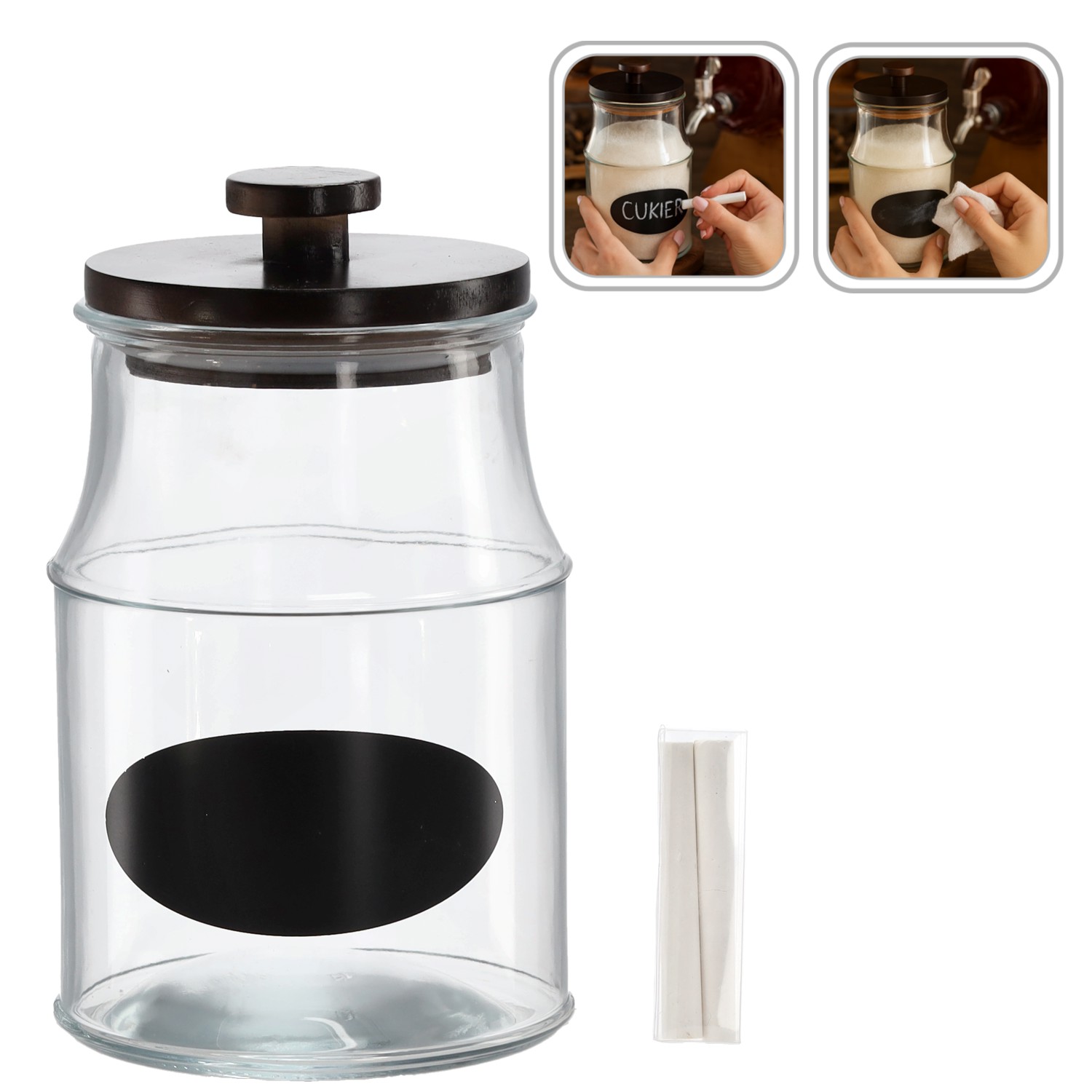 Банка объемом 2,6 л является отличным вариантом для хранения больших количеств консервов, меда, джемов, специй и других продуктов питания. Оснащенная деревянной крышкой, она обеспечивает герметичность и свежесть хранящихся продуктов. Кроме того, в комплекте имеется этикетка для надписей и мел, что позволяет легко обозначить содержимое банки. Идеально подходит для хранения и организации, а также в качестве декора кухни или кладовой.