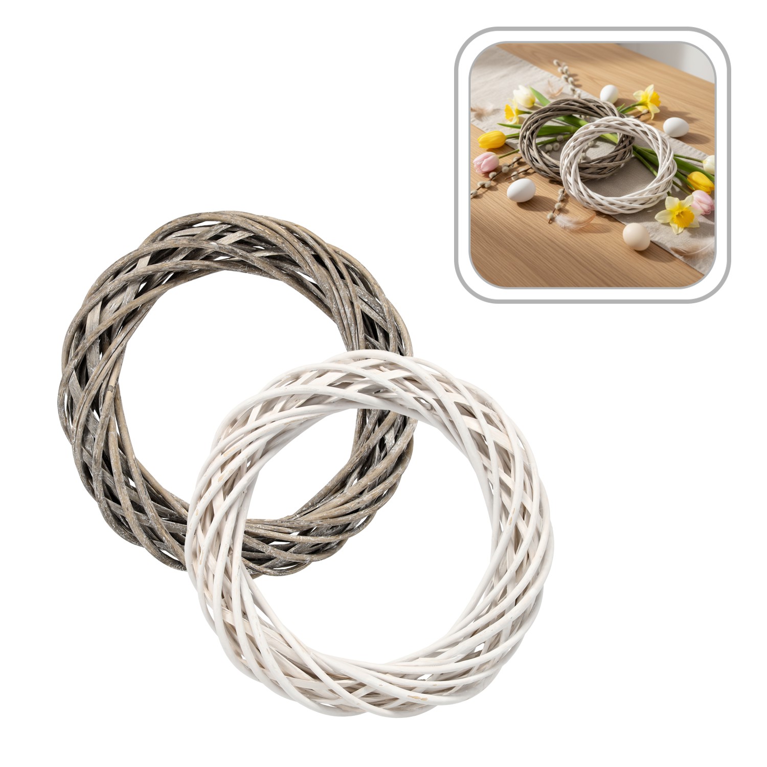 Венок был тщательно изготовлен из натуральных материалов, что придает ему очаровательный характер. Он идеально подходит в качестве основного украшения для праздничных декораций или для других случаев, как внутри помещений, так и снаружи. Его можно использовать в качестве основы для самостоятельного украшения дополнительными элементами, такими как цветы, ленты или веточки, создавая уникальные декоративные композиции. Плетеный венок – это элегантный и универсальный декоративный элемент, который придаст очарование и свежесть любому помещению.