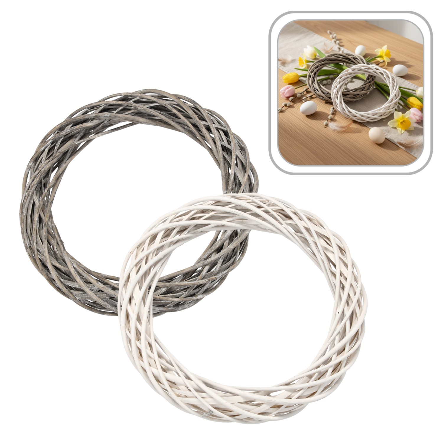 Венок был тщательно изготовлен с использованием натуральных материалов, что придает ему очаровательный характер. Идеально подходит в качестве основного украшения для праздничных декораций или для других случаев, как внутри помещений, так и снаружи. Его можно использовать в качестве основы для самостоятельного украшения дополнительными элементами, такими как цветы, ленты или веточки, создавая уникальные декоративные композиции. Плетеный венок – это элегантный и универсальный декоративный элемент, который придаст шарм и свежесть любому помещению.