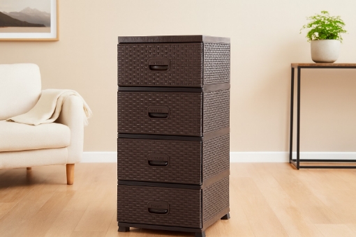 Если вы ищете практичное и стильное решение, которое поможет вам организовать пространство, этот пластиковый комод в стиле ротанга является идеальным выбором для вас. Простая форма, элегантный цвет и функциональные ящики позволяют ему удовлетворить ожидания даже самых взыскательных.