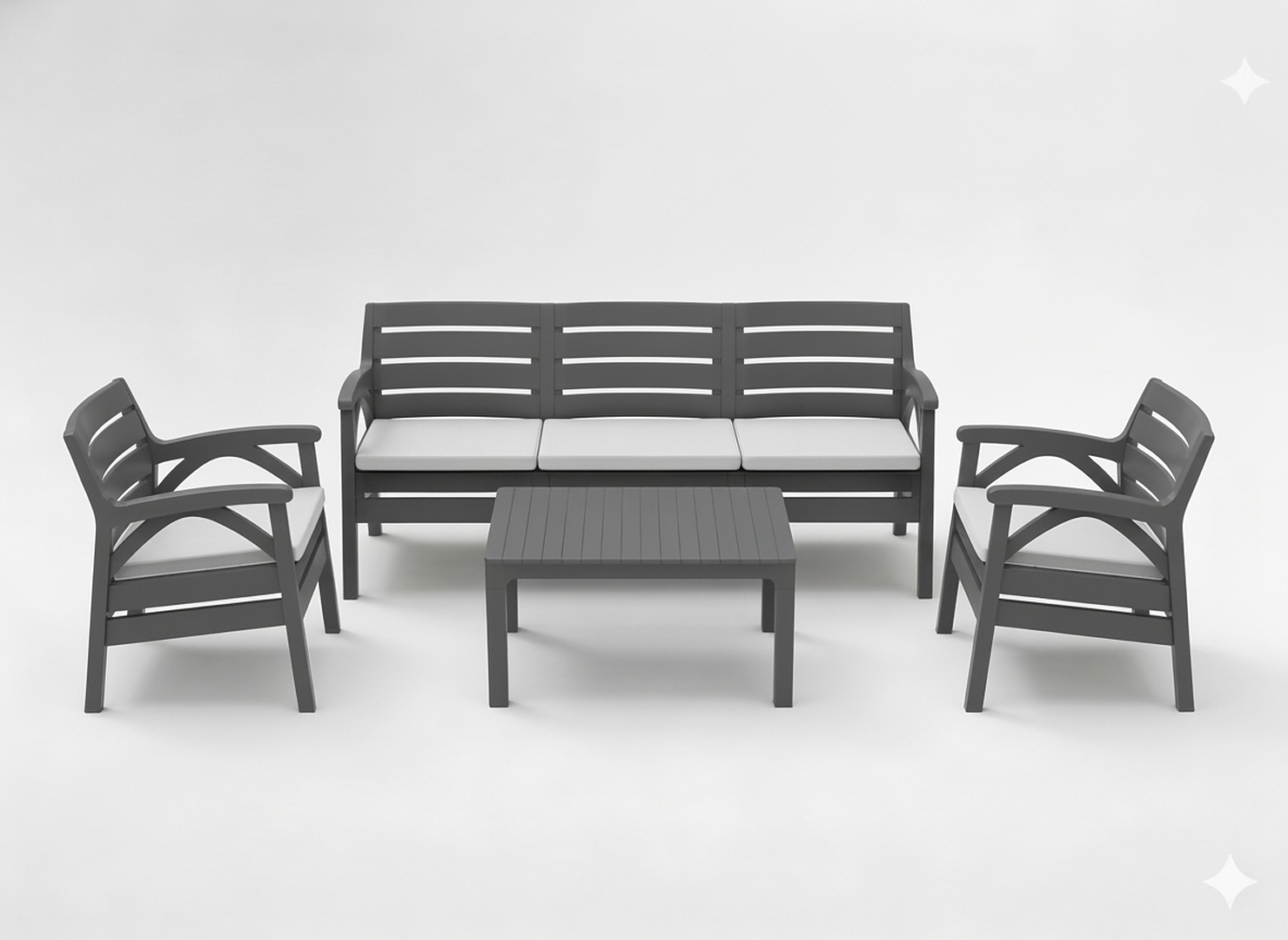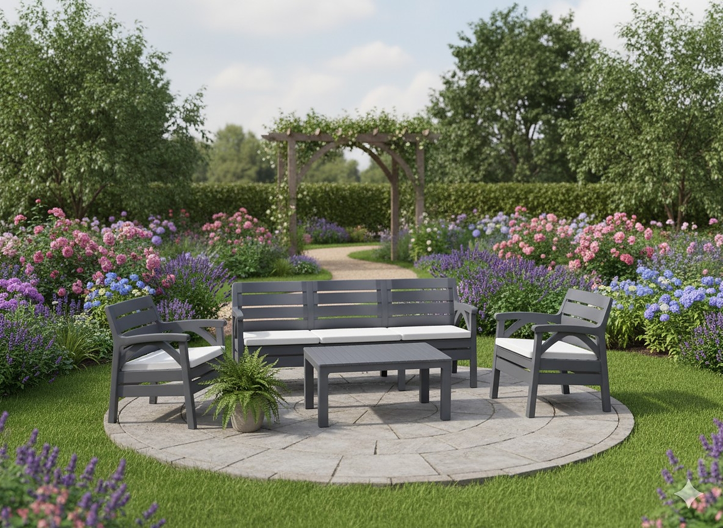 Комплект SANTANA с 3-местной скамейкой — отличный выбор для тех, кому нужно больше места для отдыха, но при этом не хочется отказываться от элегантного внешнего вида. Практичная компоновка, удобные подушки и классический дизайн делают этот комплект идеальным выбором на весь сезон ☀️