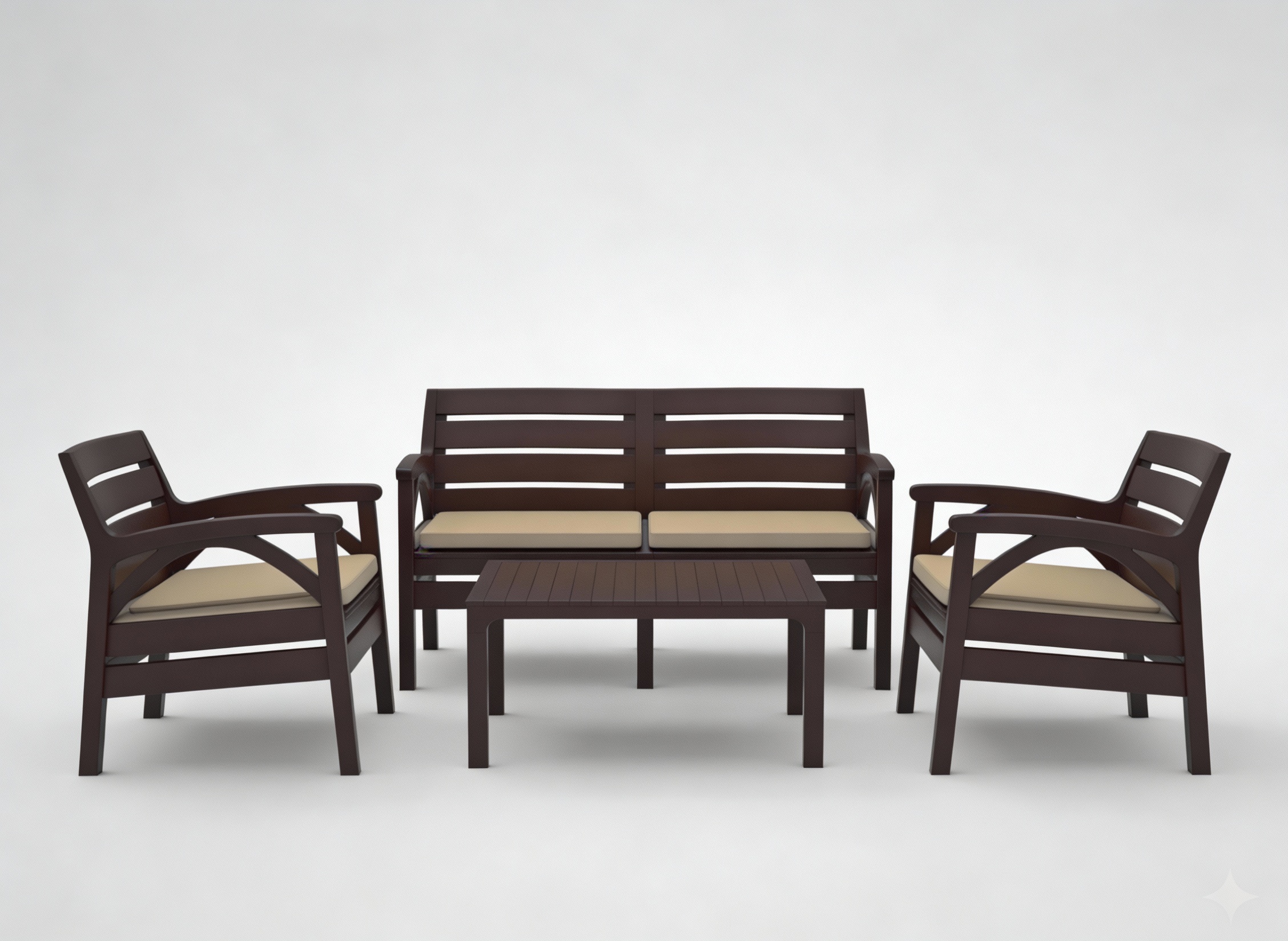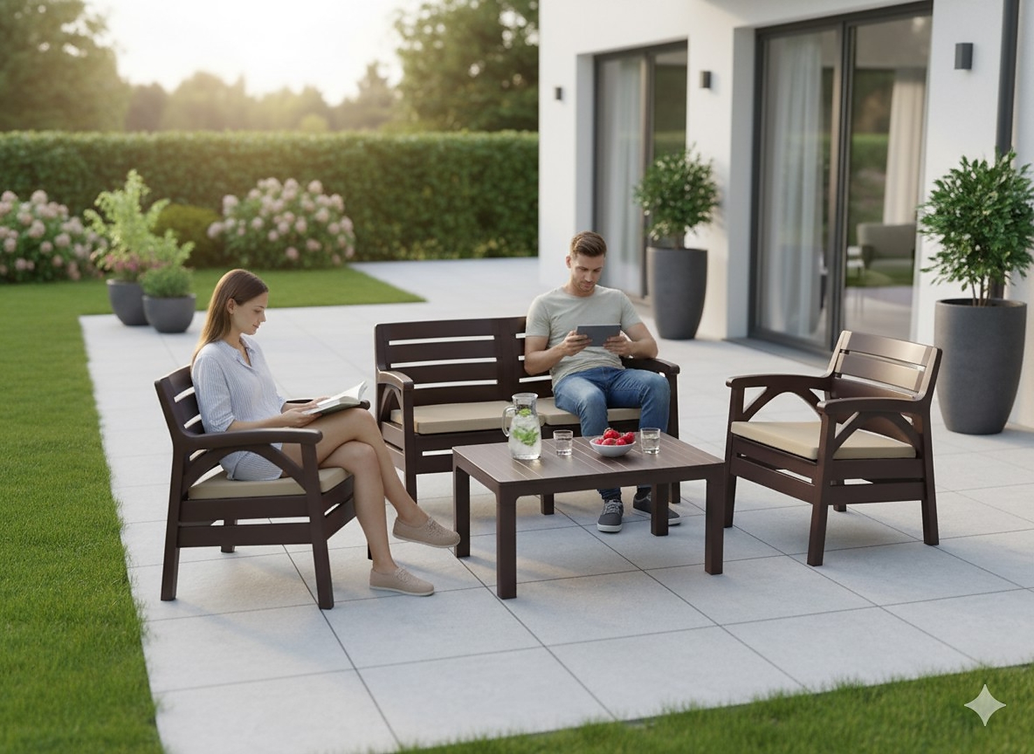 🌿 Универсальный и элегантный дизайн• Коричневый цвет прекрасно сочетается с зеленью сада• Классическая форма подходит для различных интерьеров — как современных, так и традиционных• Набор отлично смотрится как на террасе, так и на балконе