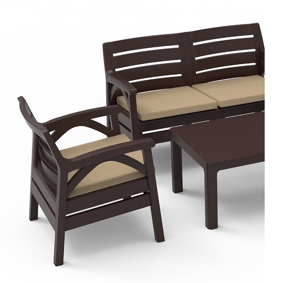 ✔️ Удобные кресла и скамейка для нескольких человек✔️ Элегантный внешний вид в оттенках коричневого✔️ Практичный столик в комплекте✔️ Идеально подходит для сада, террасы и балкона