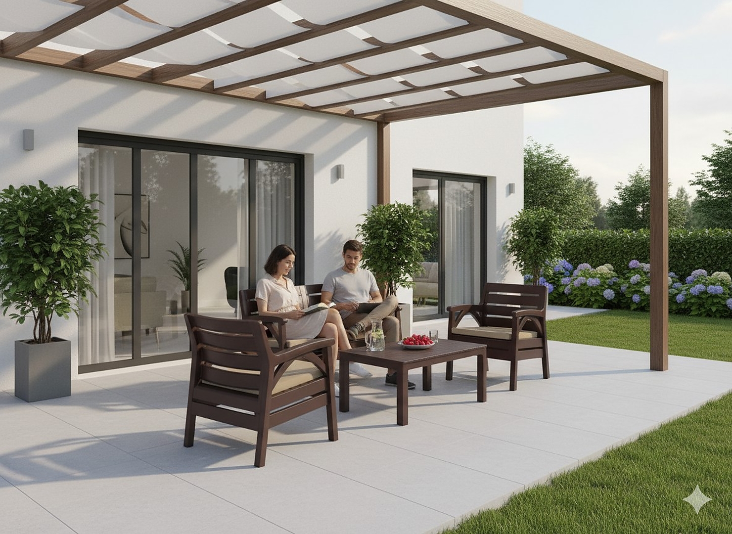Комплект SANTANA — это сочетание эстетики, комфорта и практичной планировки. Благодаря классической цветовой гамме и функциональным элементам вы с легкостью создадите уютную зону отдыха на свежем воздухе 🌿