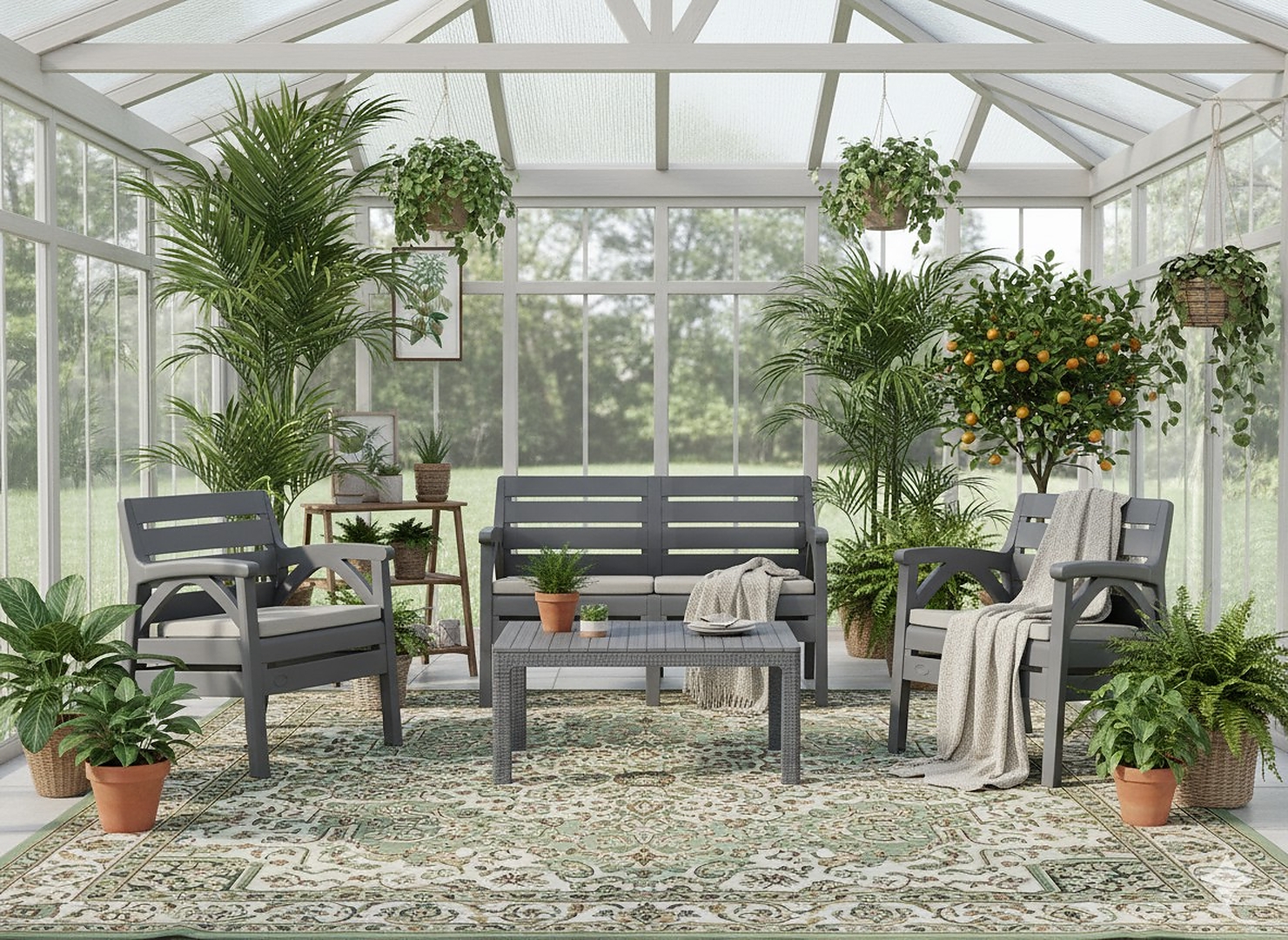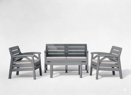 🌿 Универсальный и элегантный дизайн• Цвет антрацит прекрасно сочетается с зеленью сада• Классическая форма подходит для различных интерьеров — как современных, так и традиционных• Комплект отлично смотрится как на террасе, так и на балконе