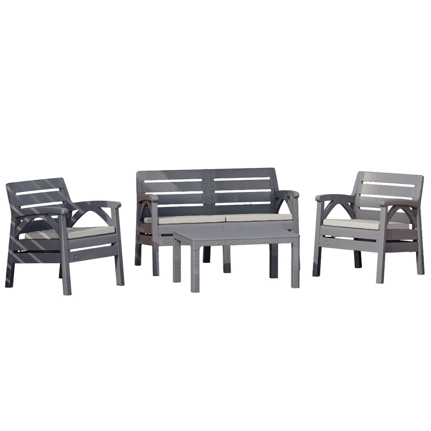 ✔️ Удобные кресла и скамейка для нескольких человек✔️ Элегантный внешний вид в оттенках антрацита✔️ Практичный столик в комплекте✔️ Идеально подходит для сада, террасы и балкона