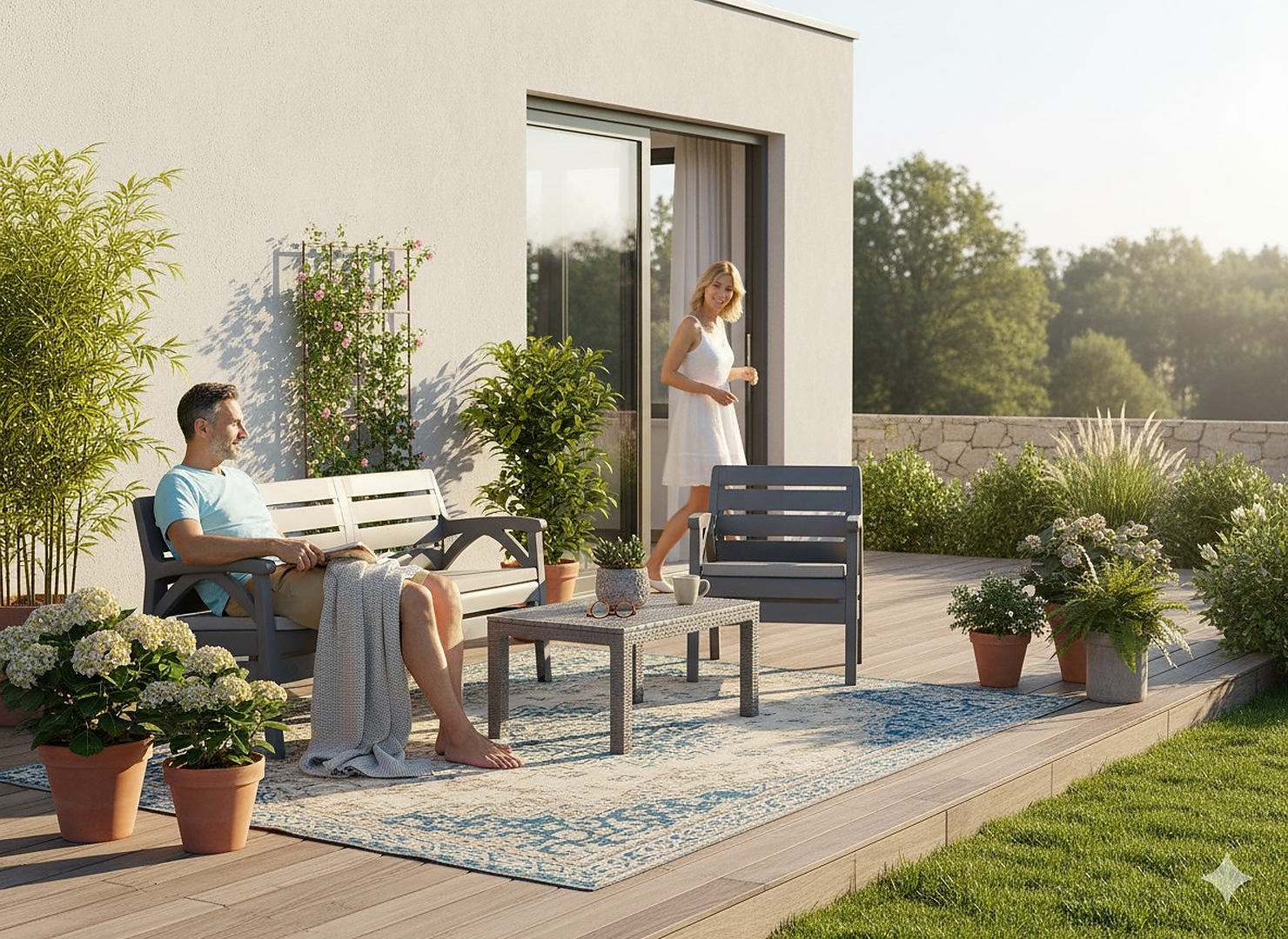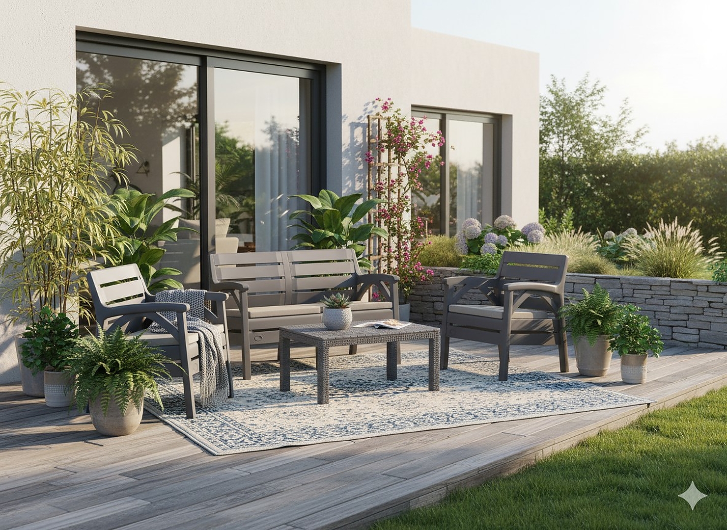 Комплект SANTANA — это сочетание эстетики, комфорта и практичной планировки. Благодаря классической цветовой гамме и функциональным элементам вы с легкостью создадите уютную зону отдыха на свежем воздухе 🌿