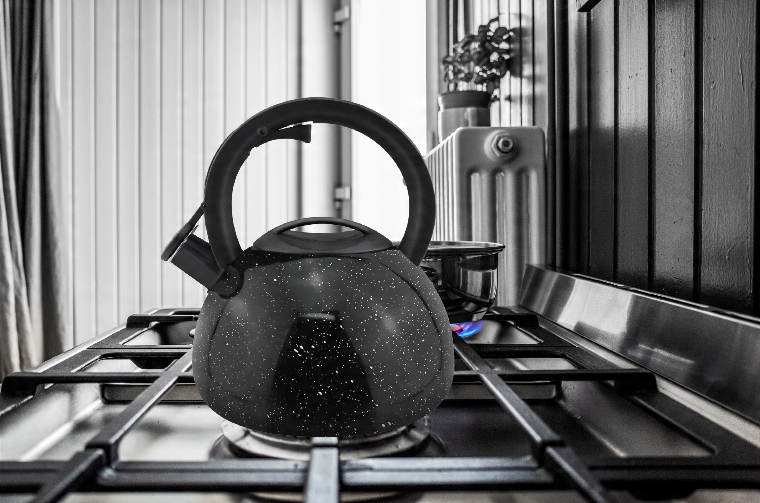 Элегантный чайник из нержавеющей стали объемом 3 литра с черной глянцевой отделкой. Прочный и простой в уходе, идеально подходит для повседневного использования.