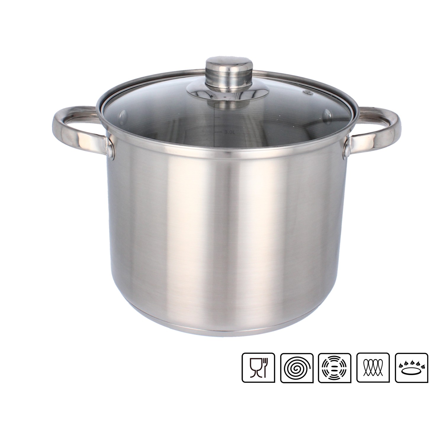 Кастрюля CookLine изготовлена из высококачественной нержавеющей стали и стекла. Она оснащена специальным 5-слойным дном, которое обеспечивает равномерный нагрев и предотвращает пригорание пищи. Кастрюля имеет размеры24x18 см, изготовлена извысококачественной нержавеющей стали ( S/S 201) толщиной0,5 мм, что обеспечивает ее исключительную прочность и коррозионную стойкость. К кастрюле прилагается соответствующая нержавеющая крышка сручкой. Подходит для всех типов плит.
