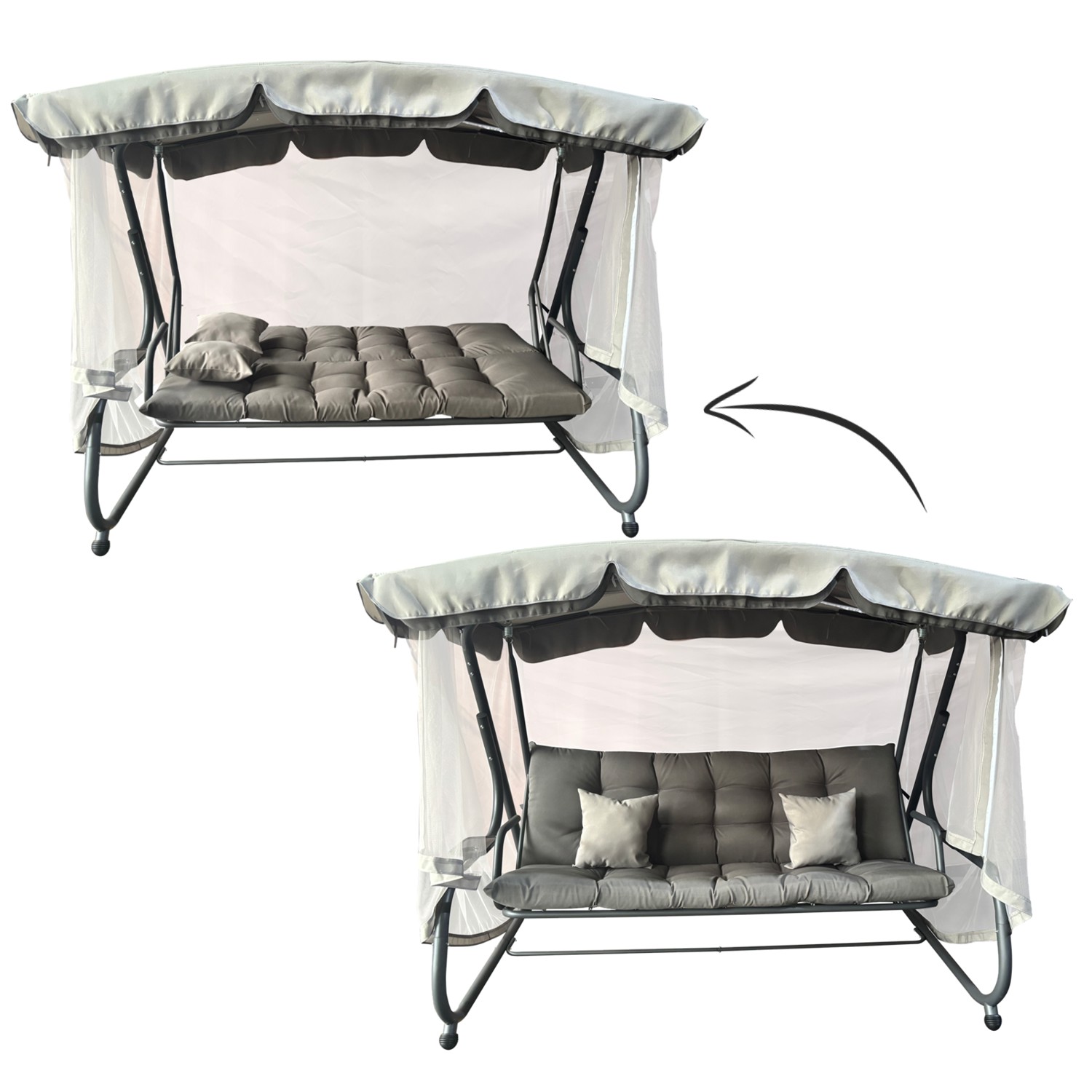 Стильная и функциональная садовая качель на 3 человека – идеальное решение для тех, кто ценит комфорт и отдых на свежем воздухе. Оснащенная москитной сеткой, она защищает от насекомых, обеспечивая спокойный отдых. Прочная стальная конструкция, толстые подушки и пружинное сиденье гарантируют удобство использования. Регулируемый навес из прочного полиэстера позволяет адаптировать защиту к текущим погодным условиям.