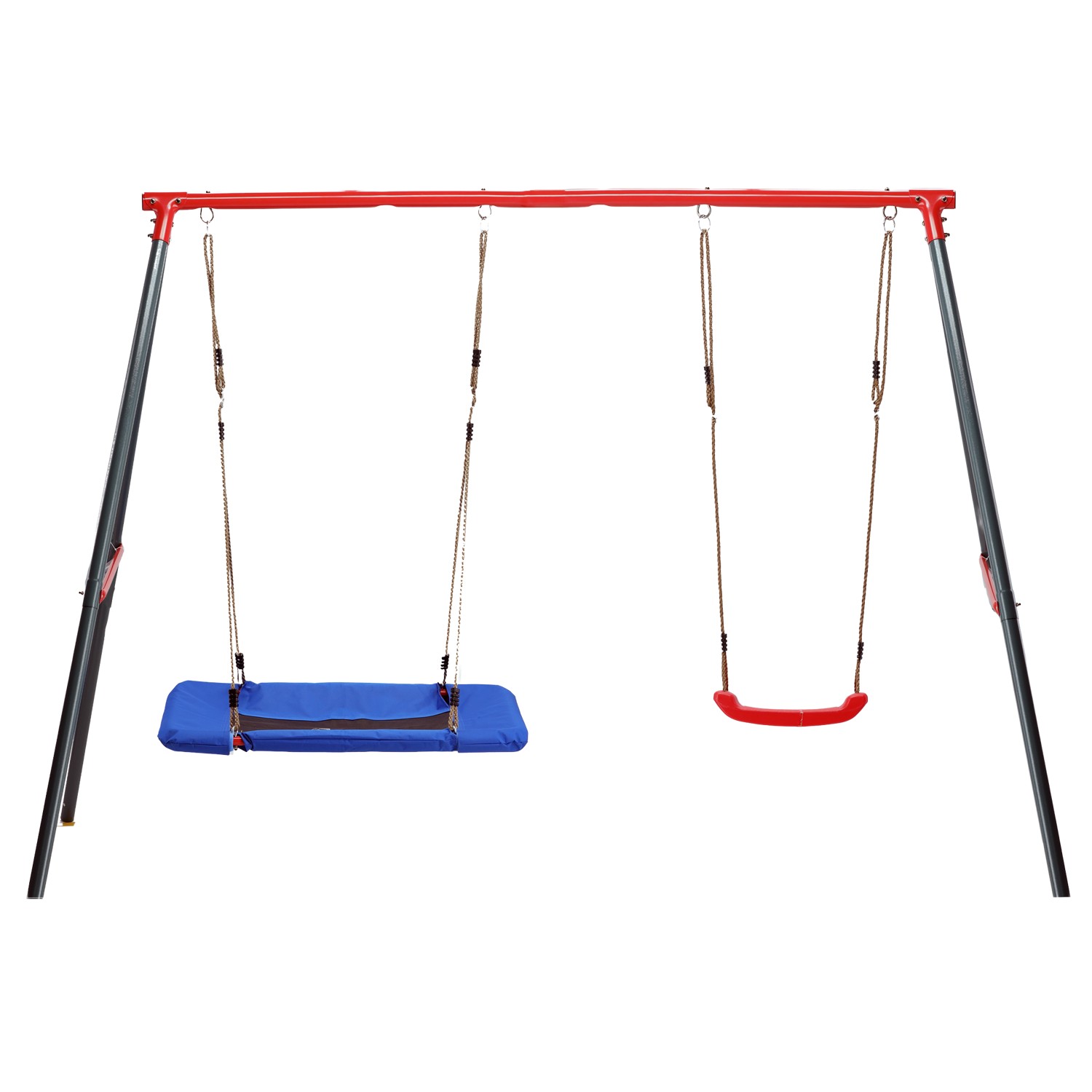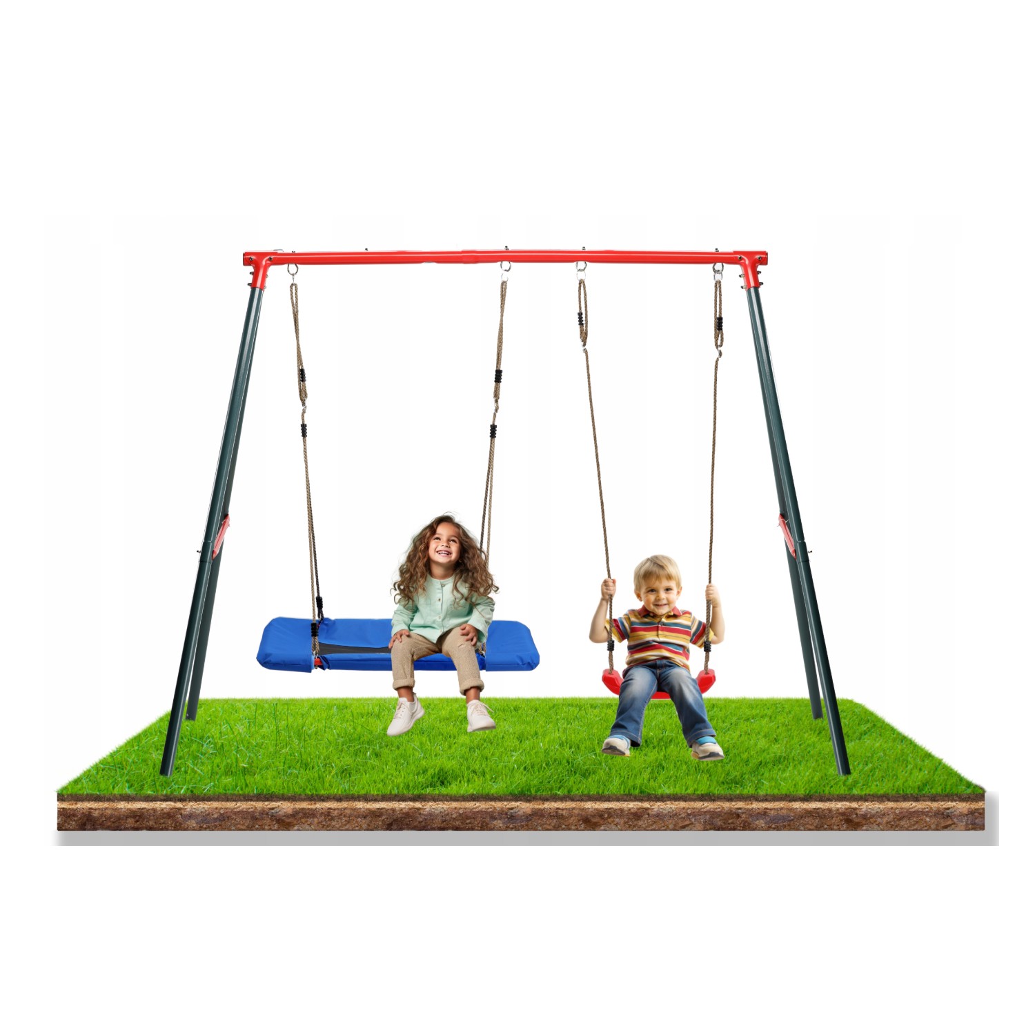 Садовая качель является идеальным садовым мебелью, которая позволит расслабиться и отдохнуть после напряженного дня. Она станет прекрасным дополнением любого сада или террасы. Возможность раскачиваться во время отдыха на свежем воздухе позволит проводить на ней долгие часы. Конструкция изготовлена из металлических труб разного диаметра, что обеспечивает прочность и безопасность. Оснащена классическим красным сиденьем и современной синей гнездовой качелью, которые очень удобны в использовании.