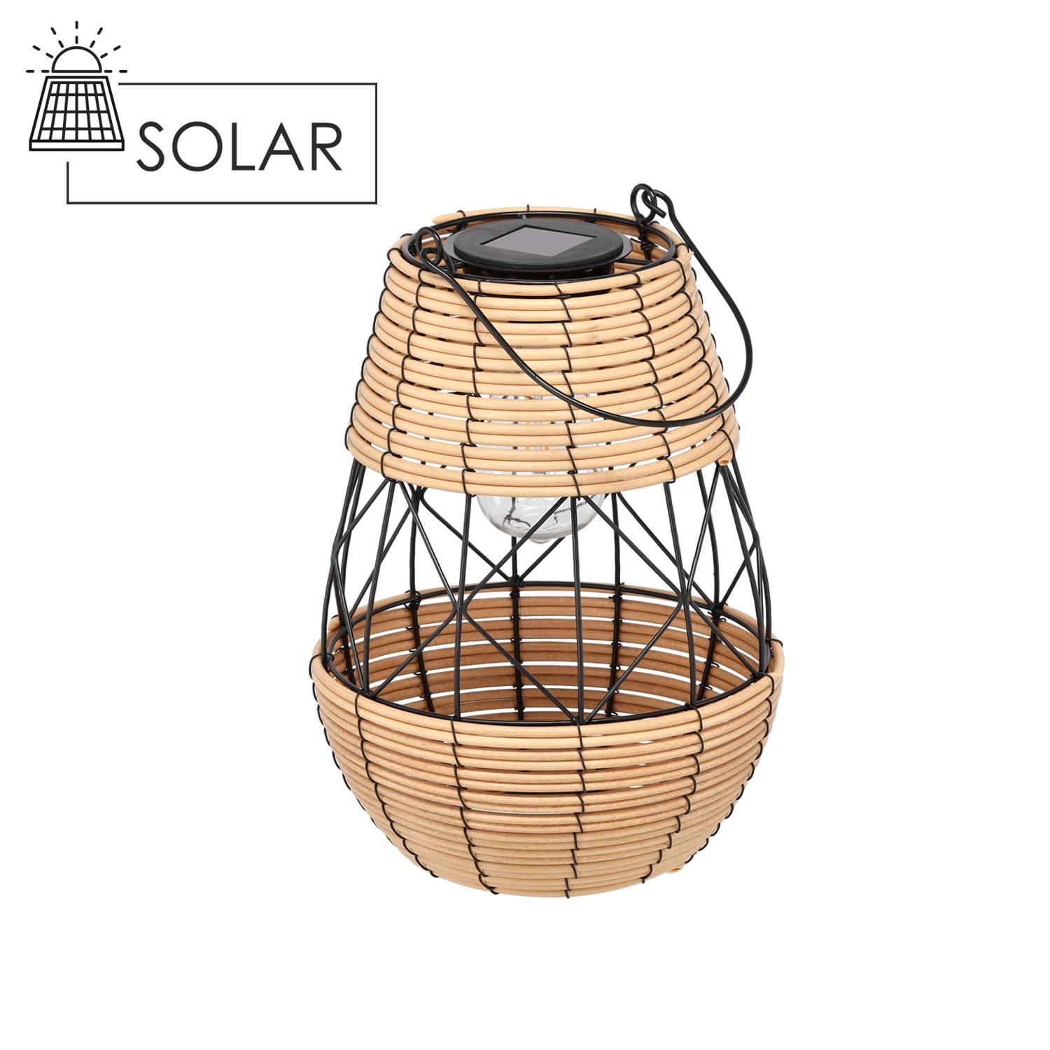 СОЛНЕЧНЫЙ ФОНАРЬ МЕТАЛЛИЧЕСКИЙ - ЧЕРНО-БЕЖЕВЫЙ 32 СМ