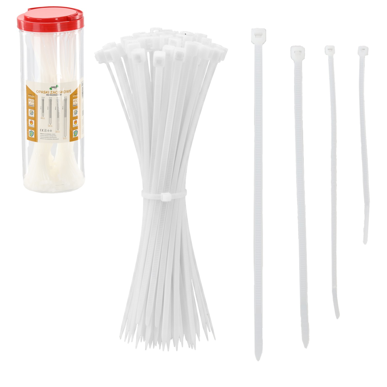 Материал: нейлонЧто содержится в тубе?200 шт. хомутов 2,5x100 мм, белый цвет100 шт. хомутов 3,6x150 мм, белого цвета100 шт. хомутов 3,6x200 мм, белого цвета50 шт. хомутов 4,8x300 мм, белого цветаВоспламеняемость материала: класс UL 94 V2, самозатухающийТемпература монтажа: от -10 °C до +60 °CДиапазон рабочих температур: от -35 °C до +85 °CОсобые характеристики: специальный состав материала, устойчивый к ультрафиолетовому излучениюУстойчивость к воздействию: масел, смазок, бензина, моющих средств, хлорированных растворителей, спиртов и нефтепродуктовУпаковка по 450 шт.