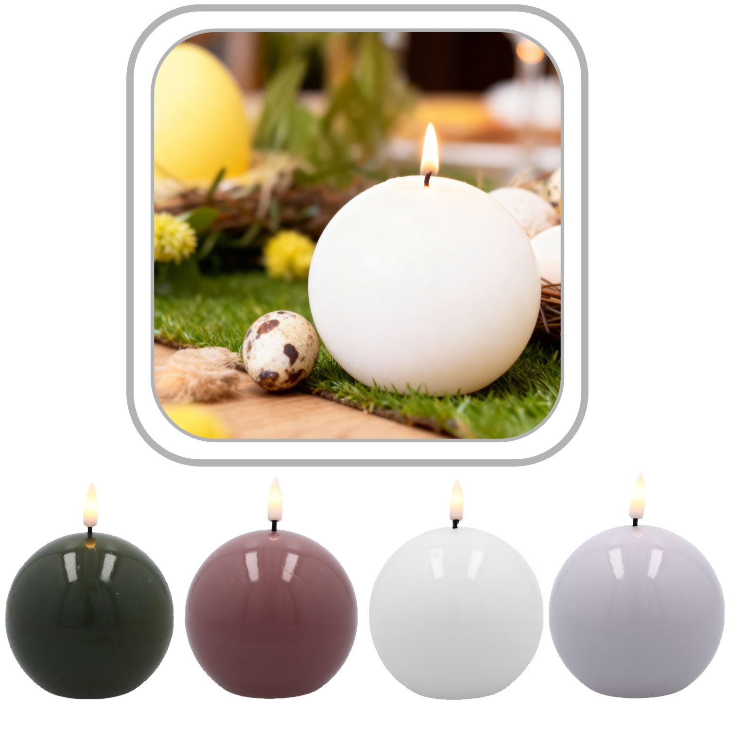 Добавьте немного волшебства в свой интерьер с нашей свечой из воска LED в форме шара. Свеча имеет диаметр 8,5 см и высоту 8,5 см, благодаря чему она отлично подойдет как декоративный элемент на столе, так и в качестве тонкого дополнения пространства в гостиной или спальне.