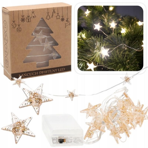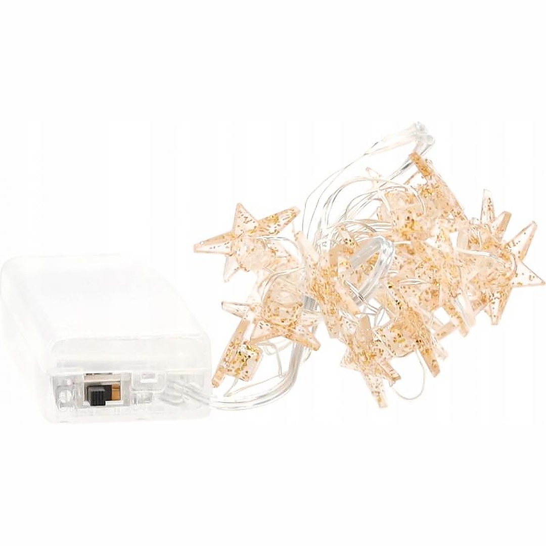 Погрузитесь в праздничную атмосферу с декоративной светодиодной гирляндой с золотыми звездочками. Благодаря 20 диодам, излучающим теплое, уютное свет, это украшение придаст неповторимый шарм любому интерьеру. Идеально подходит для украшения елки, комода, полки или в качестве элемента праздничного украшения.