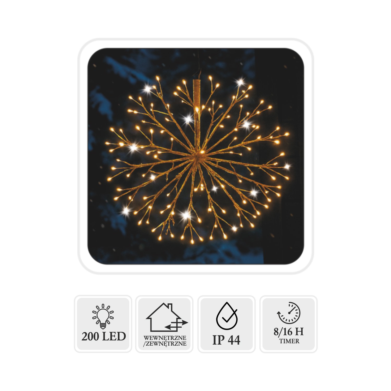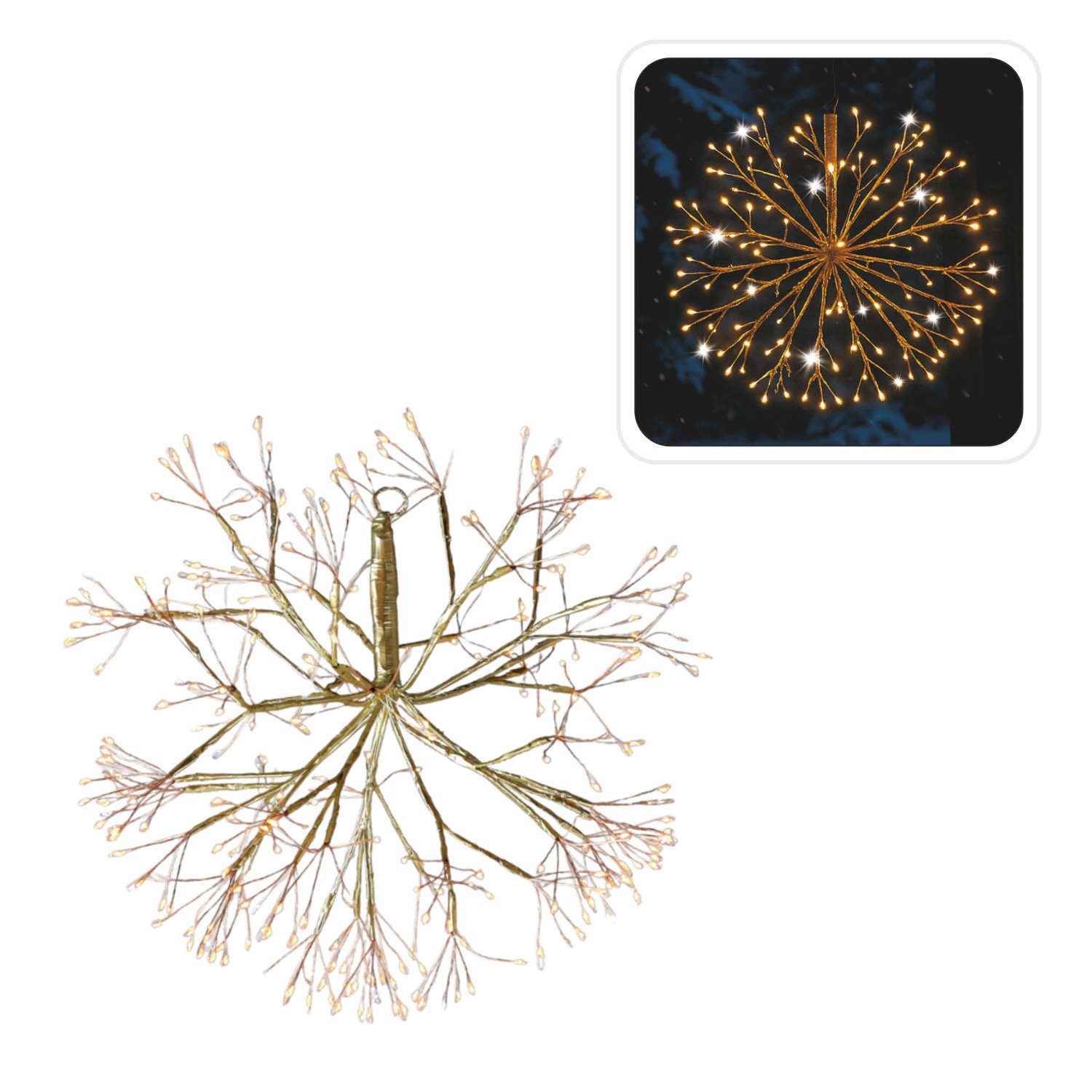 Погрузитесь в магию праздников с уникальным украшением в виде золотистой омелы. Благодаря 288 микро-светодиодам теплого белого цвета с холодным вспышкой каждые 6 диодов, любое пространство приобретет необыкновенный шарм и праздничное сияние.