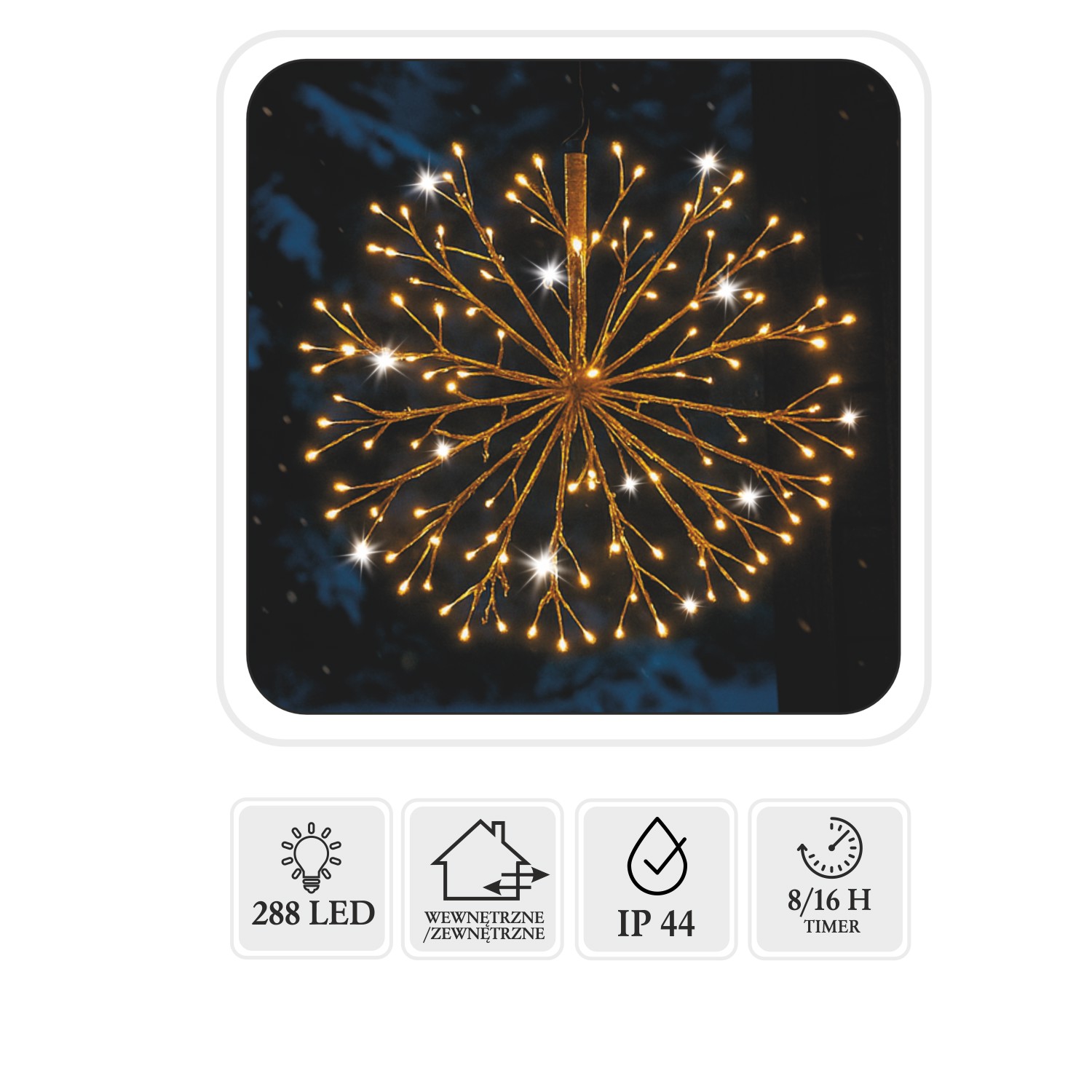 Окунитесь в магию праздников с уникальным украшением в виде золотистой омелы! Благодаря 288 микро-светодиодам теплого белого цвета с холодным вспышкой каждые 6 диодов любое пространство обретет необыкновенное очарование и праздничное сияние 🎄💡