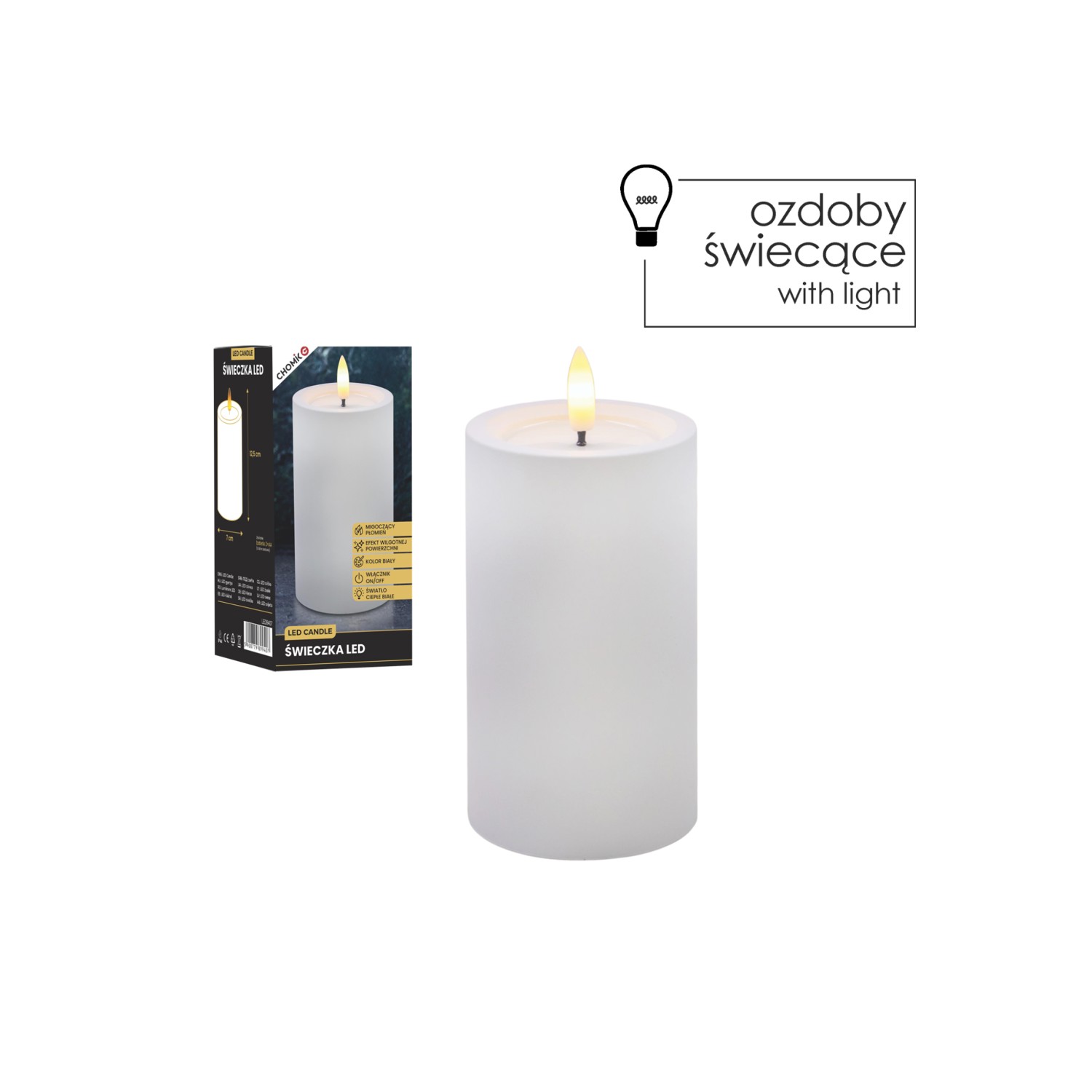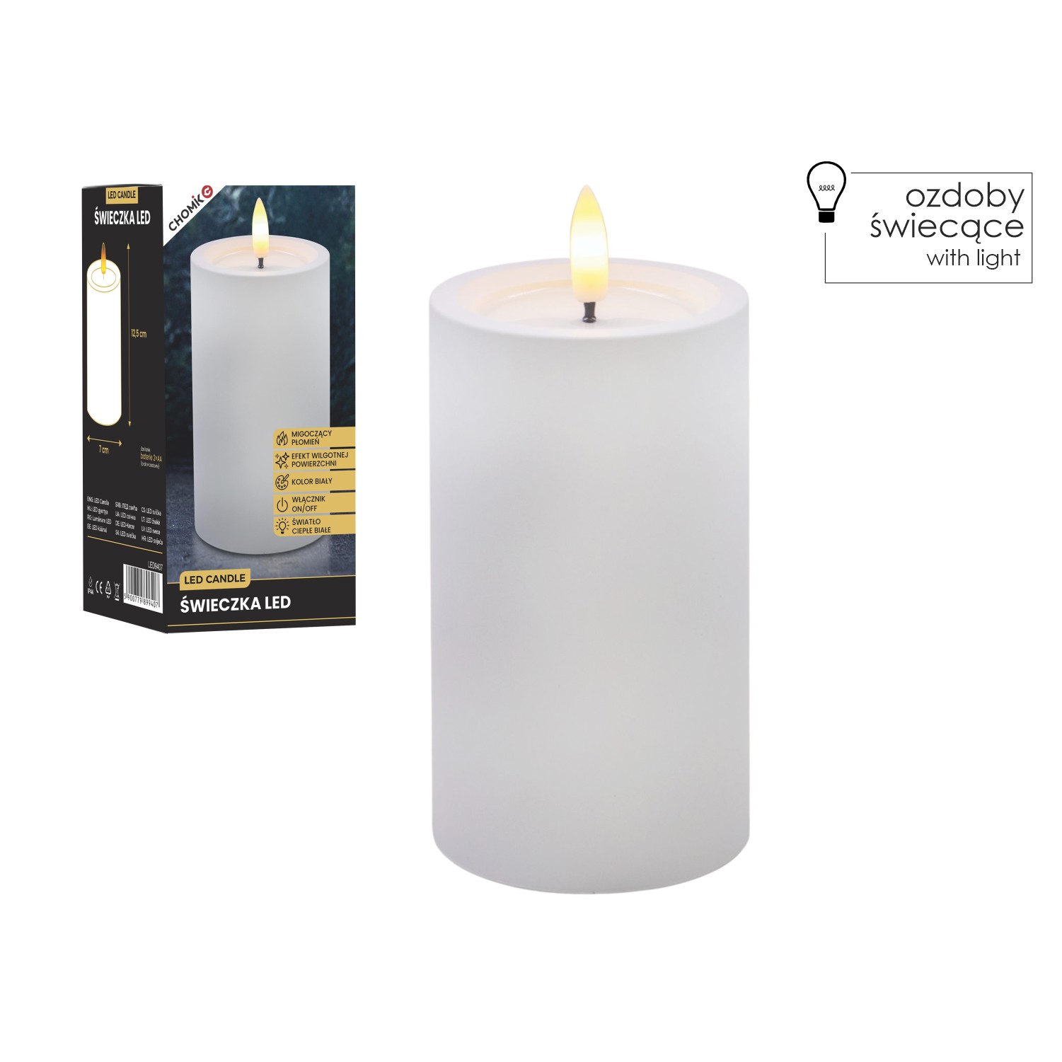 Пластиковая свеча LED с мерцающим пламенем теплого белого цвета и эффектом влажной поверхности в верхней части. Идеально подходит для украшения интерьера, прекрасно вписывается в различные стили.Питание от двух батареек AA (батарейки не входят в комплект).Функция: Вкл/Выкл.Цвет: белый