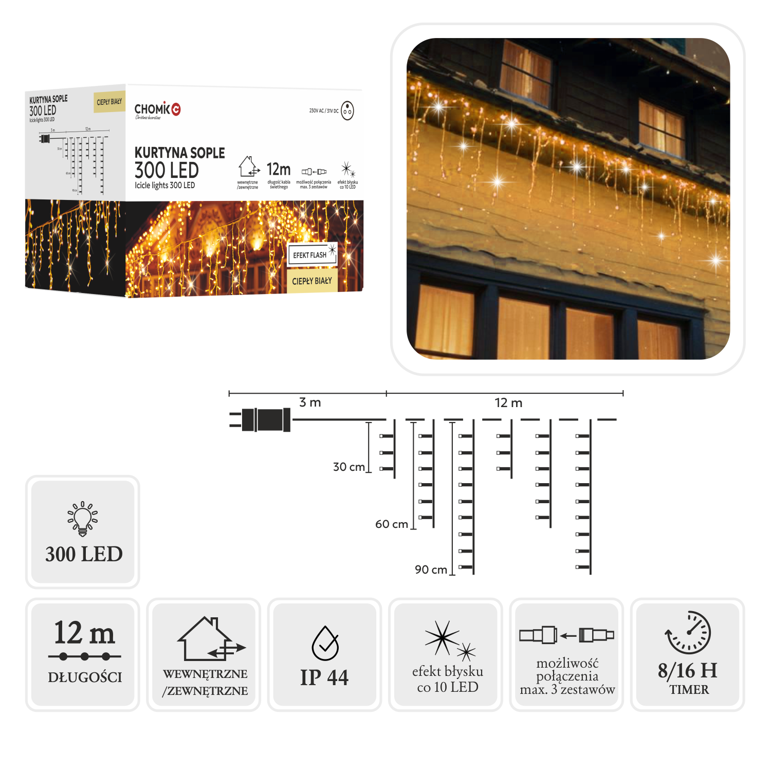 ЗАВЕСА SOPLE 300L ТЕПЛЫЙ БЕЛЫЙ + FLASH