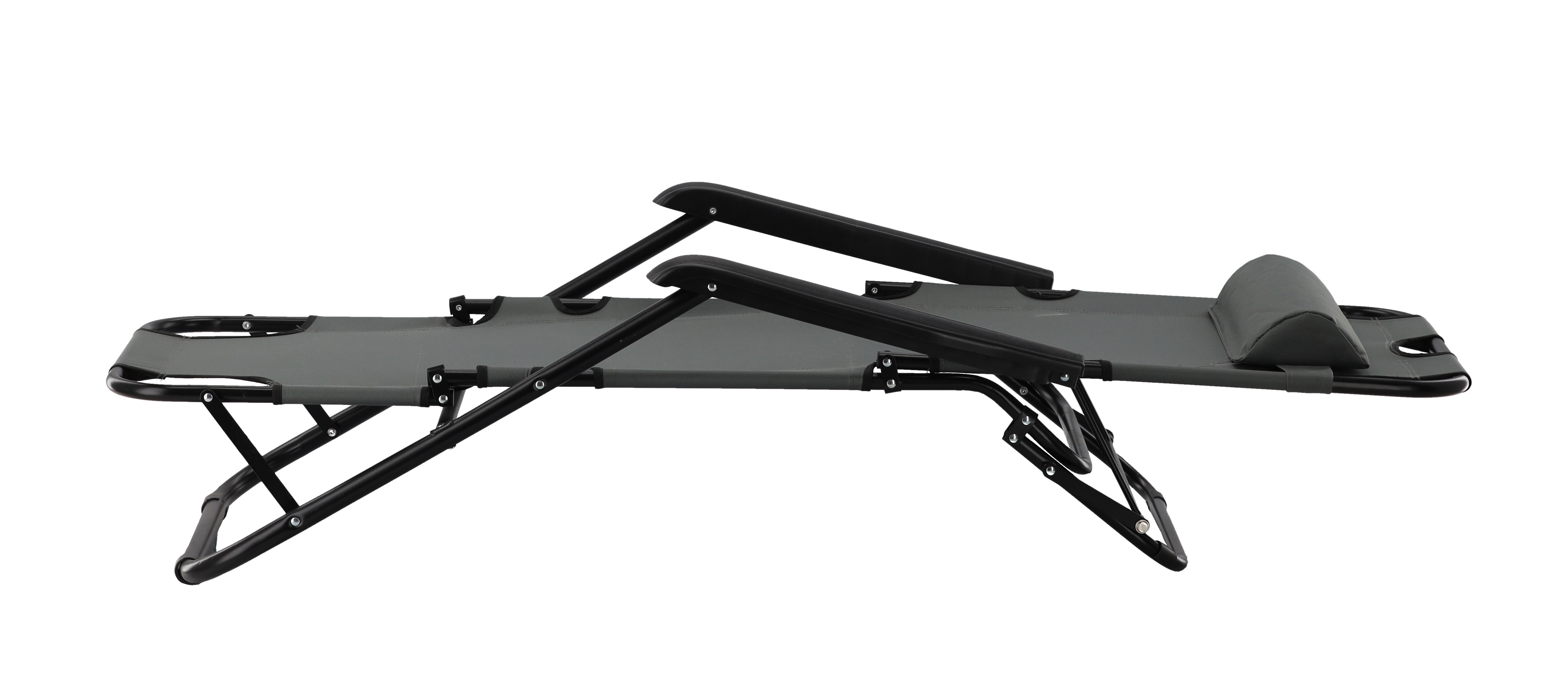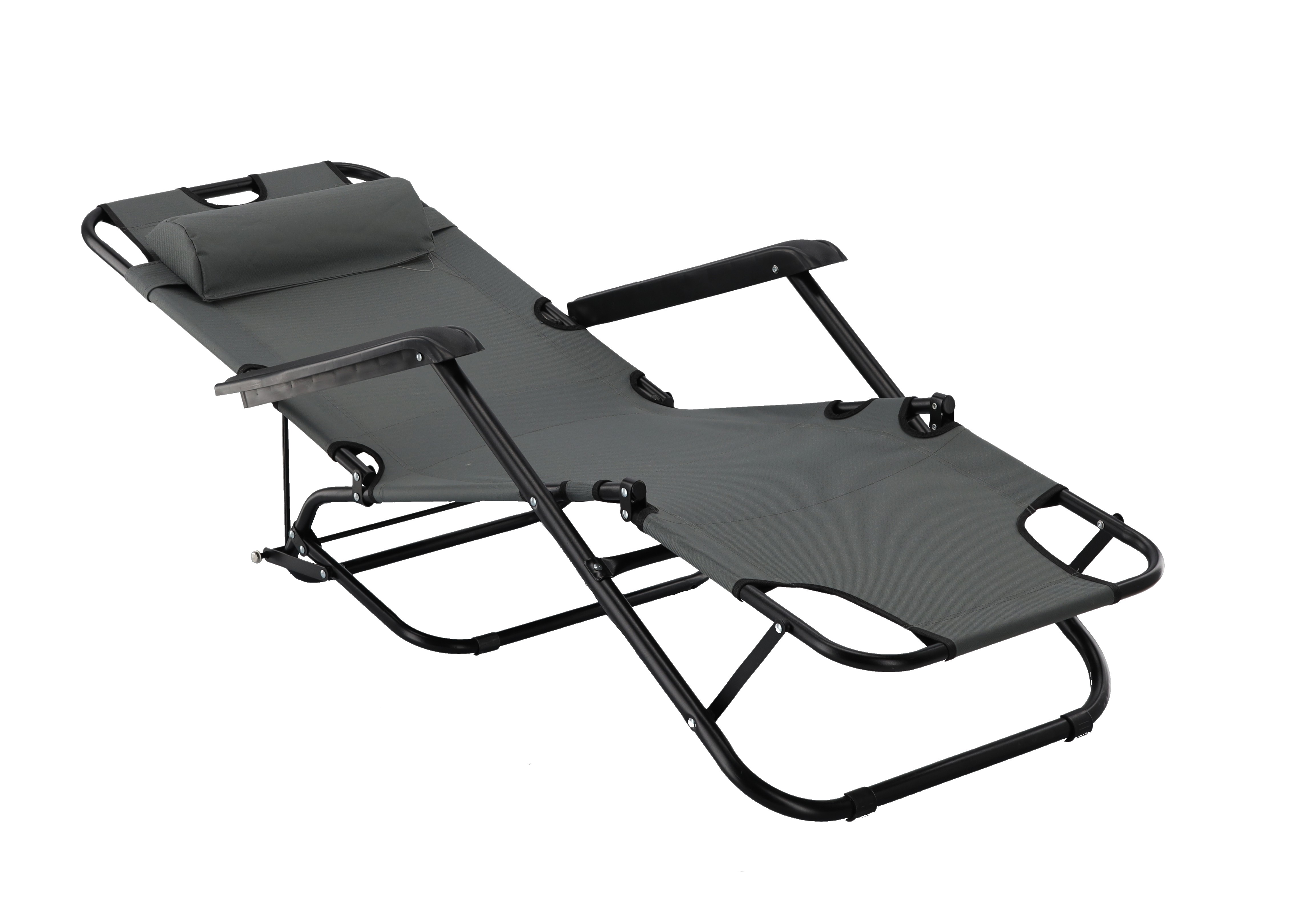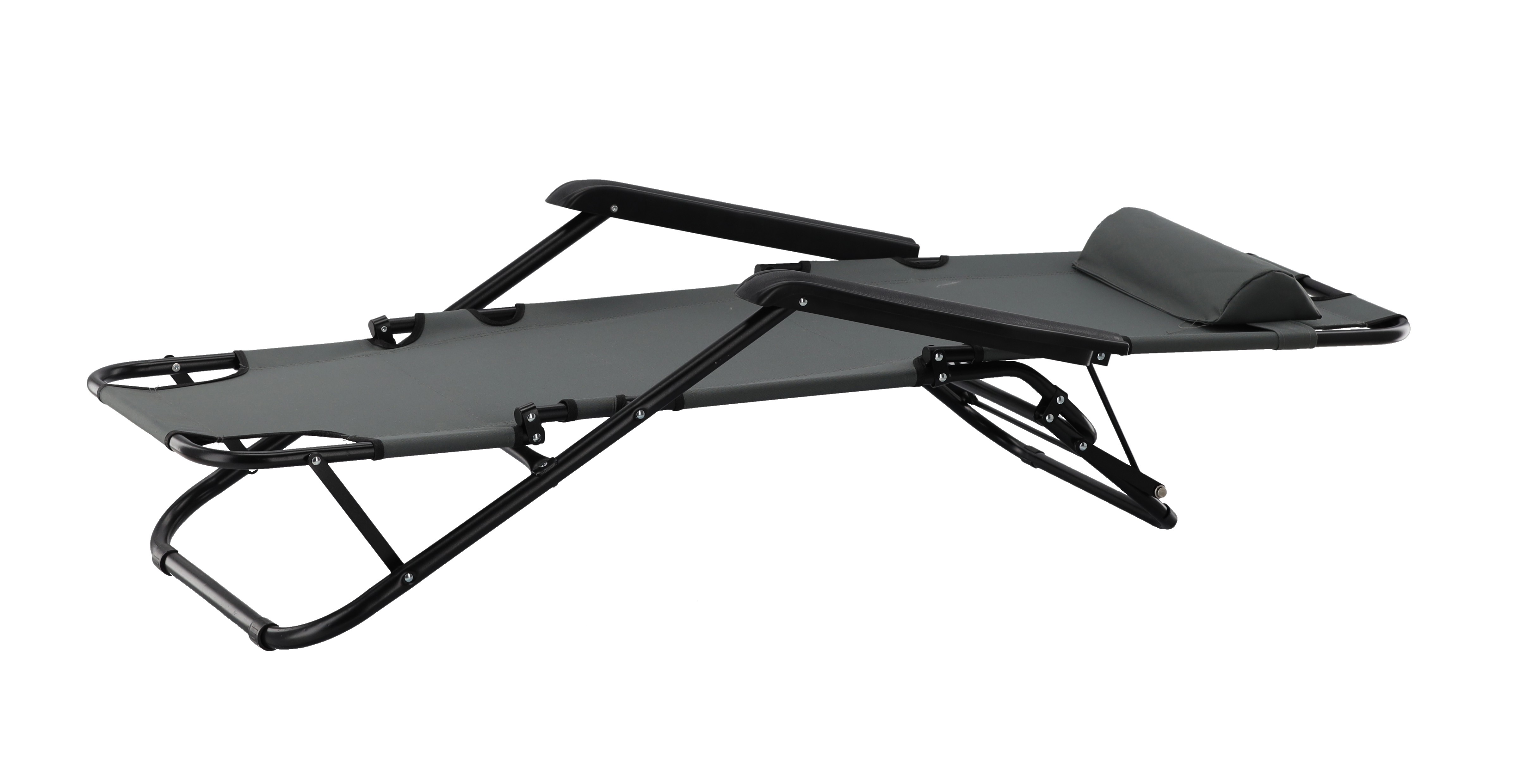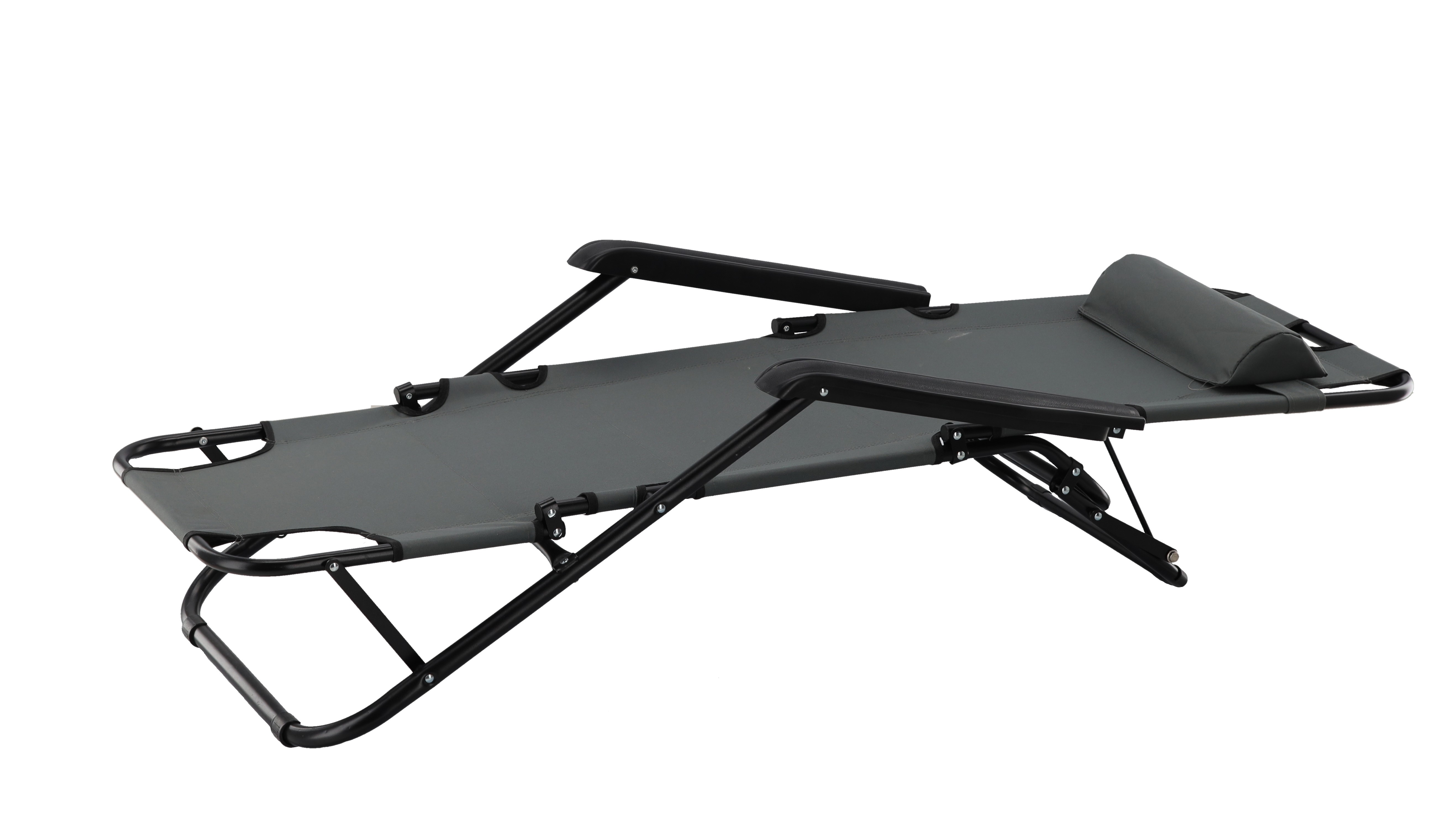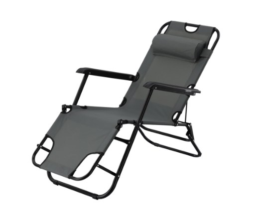 СКЛАДНОЙ САДОВОЙ ШЕЗЛОНГ С ПОДГОЛОВНИКОМ, СЕРЫЙ 🌤️