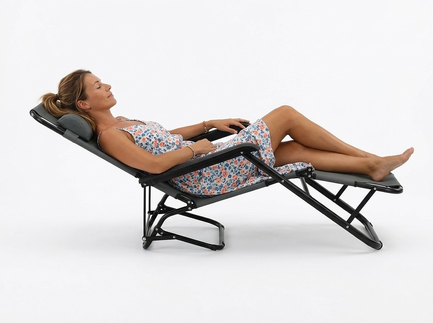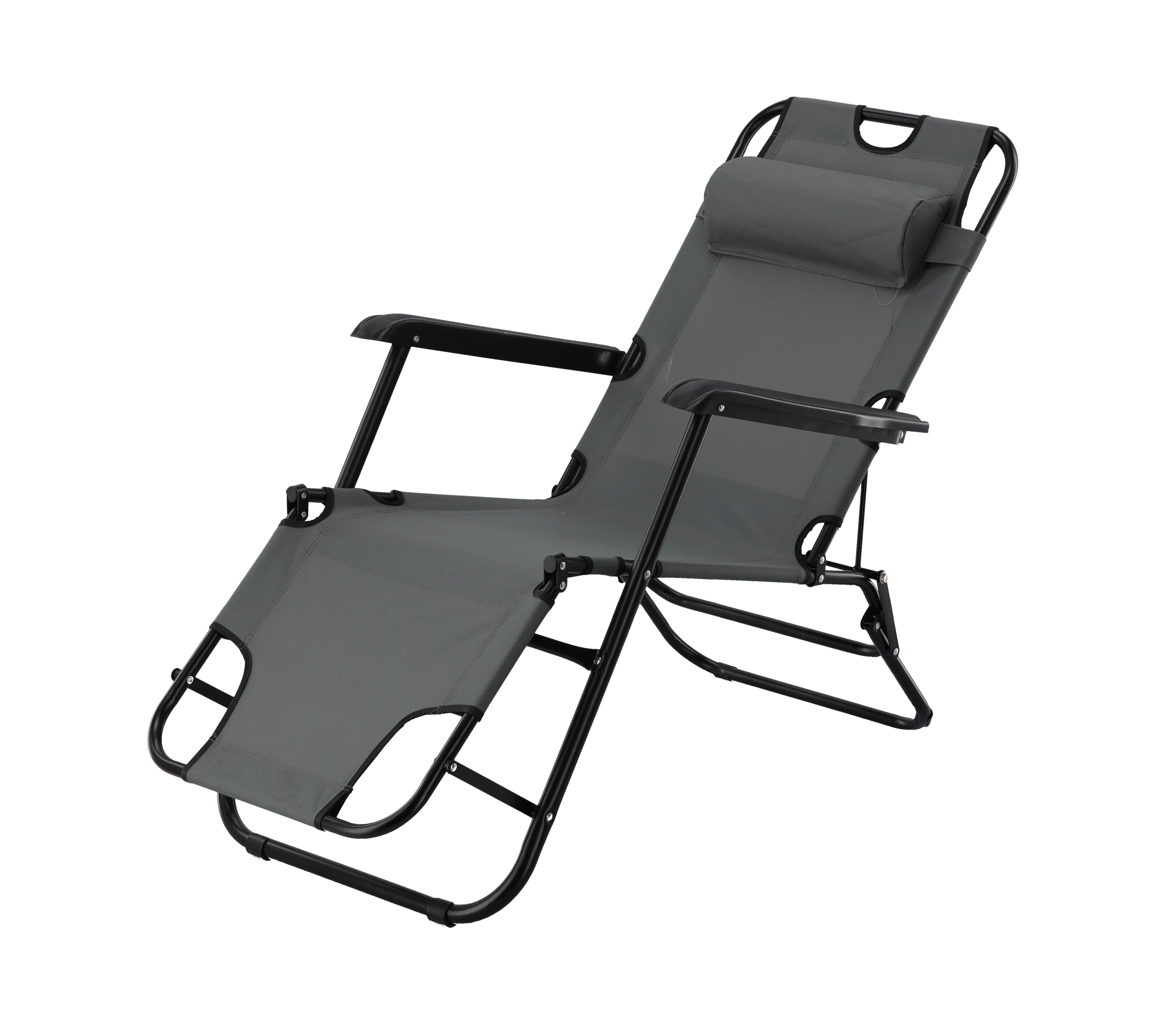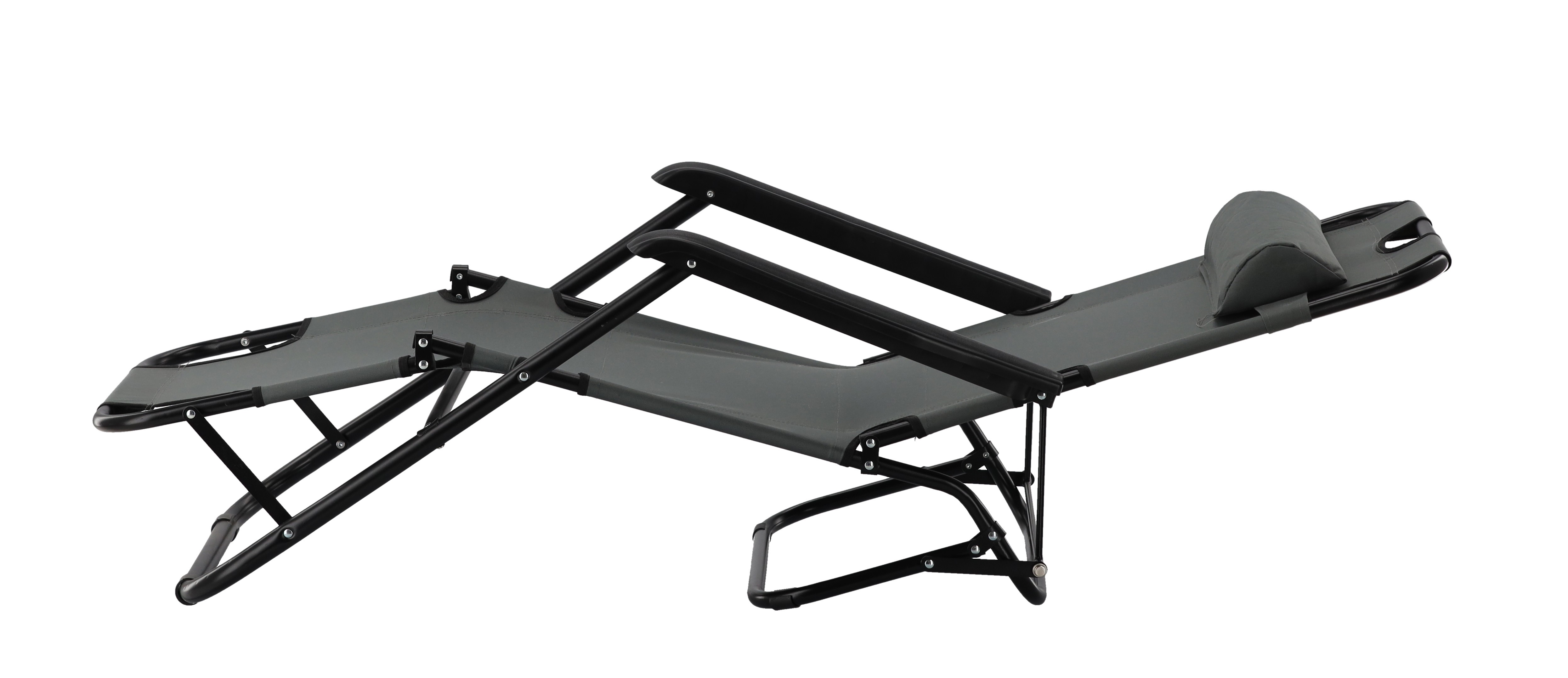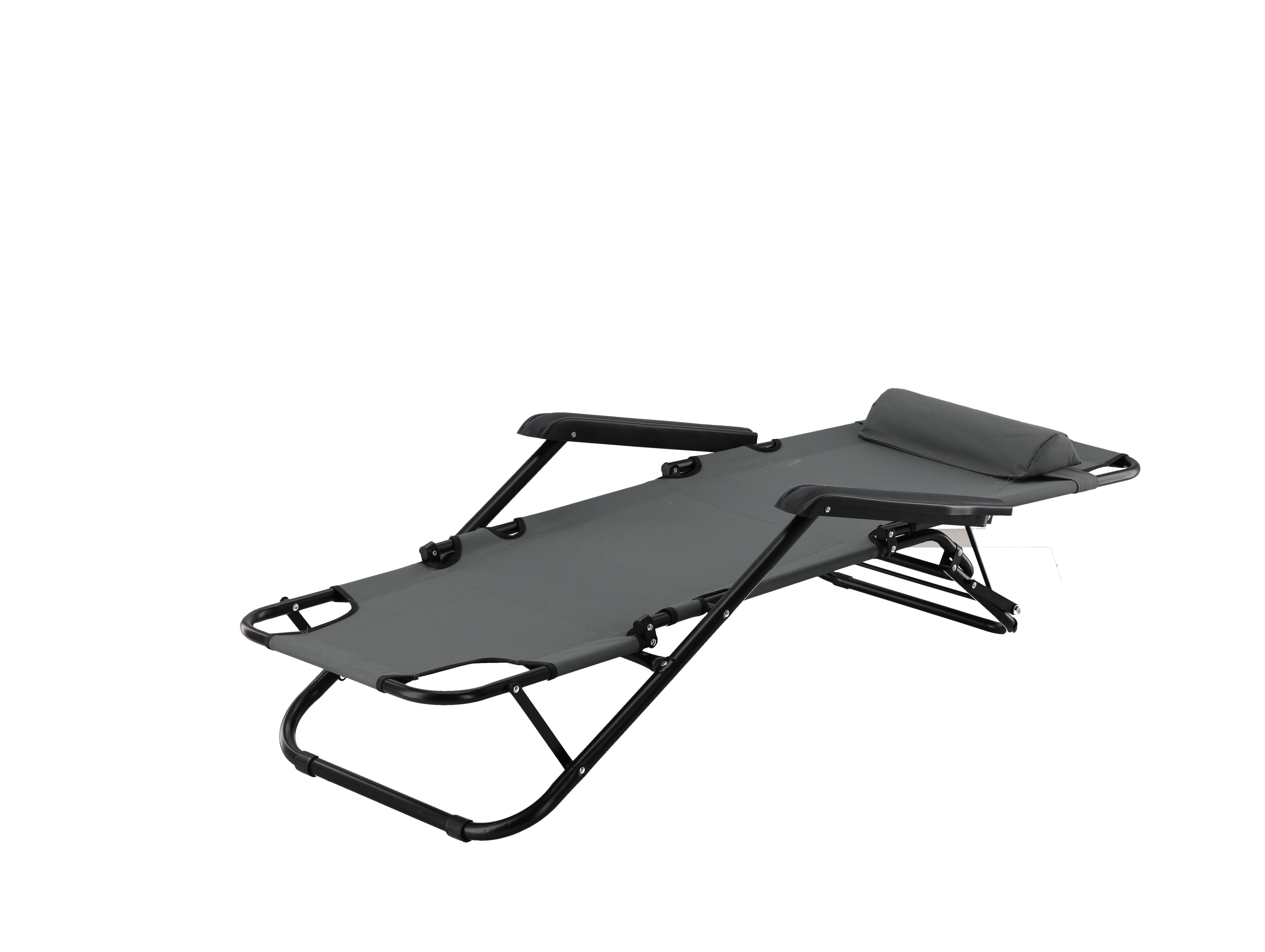 СКЛАДНОЙ САДОВОЙ ШЕЗЛОНГ С ПОДГОЛОВНИКОМ, СЕРЫЙ 🌤️