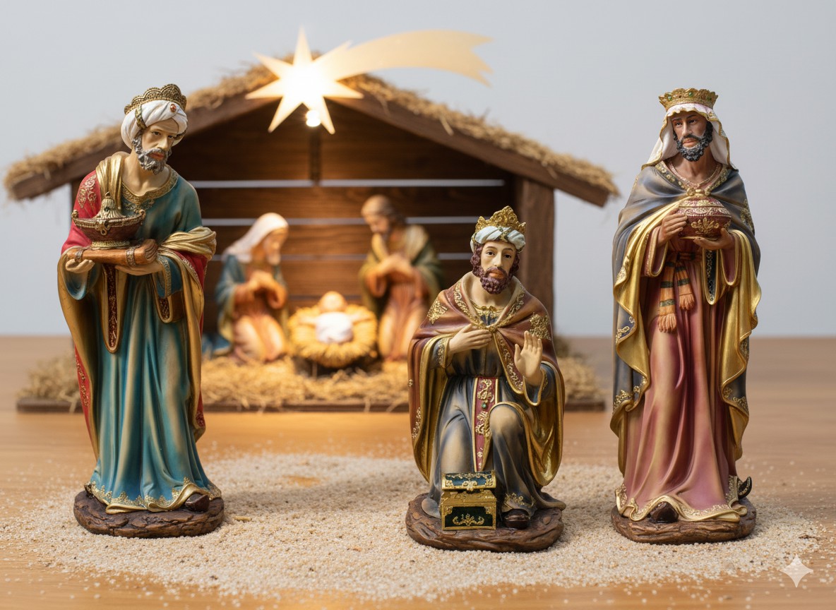 Добавьте в свою праздничную композицию особый блеск и величие с помощью прекрасного набора «Три царя».👑✨Эти искусно выполненные фигурки прекрасно передают атмосферу Вифлеемской ночи, символизируя мудрость, смирение и богатство даров, принесенных младенцу Иисусу. 🌠