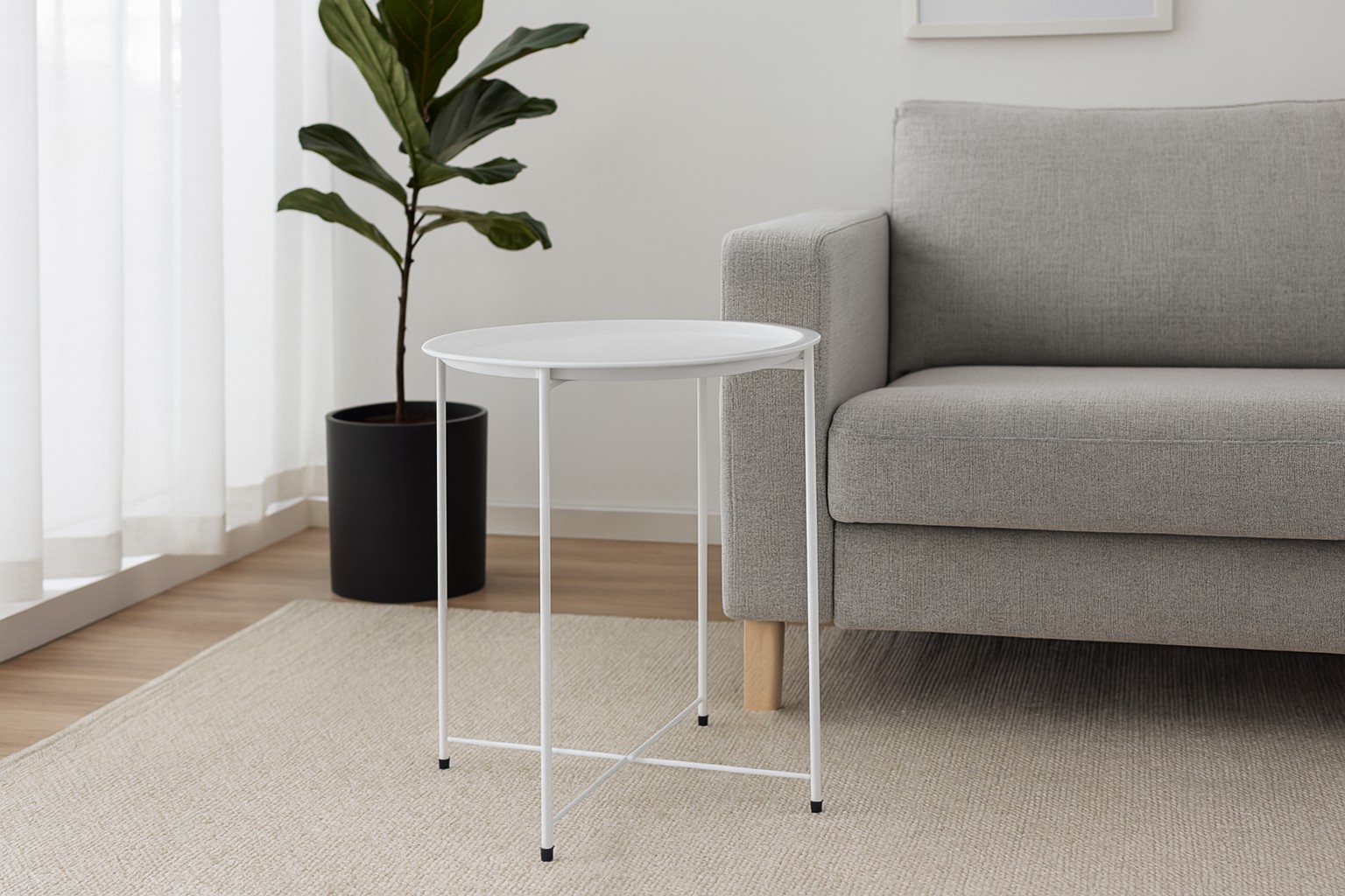 🌟 КРУГЛЫЙ БЕЛЫЙ МЕТАЛЛИЧЕСКИЙ КОФЕЙНЫЙ СТОЛ В СКАНДИНАВСКОМ СТИЛЕ