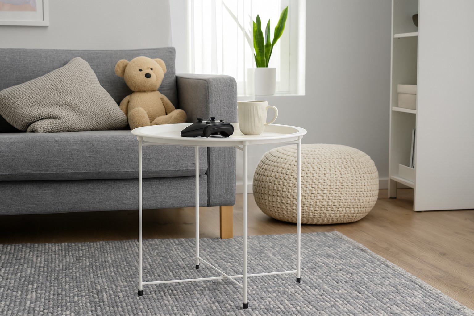 Современный и минималистичный кофейный столик ☕✨ – это предложение для тех, кто ценит стиль и функциональность в одном изделии. Благодаря своей легкой 🌿 и в то же время прочной конструкции 🔒, он отлично подойдет для гостиной 🛋️, спальни 🛏️, прихожей 🚪 или террасы 🌞. Белый цвет ⚪ и простой дизайн в скандинавском ❄️ и лофт-стиле 🏙️ придают ему уникальный характер, который идеально вписывается в последние тенденции интерьера 🎨.